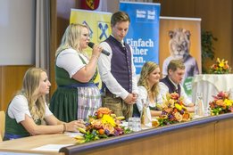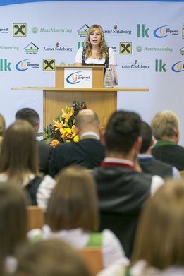 „Die Landjugend bereitet auf die Zukunft und das Leben vor. Man lernt Verantwortung zu tragen und sich zu beweisen. Eine Funktion zu übernehmen bei einer Organisation wie der Landjugend ist ein riesen Gewinn für später“, so LK-Präsident Eßl in seiner Ansprache und weiter: „Die Bilanz an Tätigkeiten und Veranstaltungen der Landjugend von Bewerben über Persönlichkeitsbildung ist beeindruckend. Ohne die Landjugend wäre die Gesellschaft um vieles ärmer.“ Auch Zweiter Präsident des Salzburger Landtages Dr. Sebastian Huber sprach davon, wie wichtig es sei, jungen Funktionären Anerkennung und Wertschätzung für die aufgewendete Zeit zukommen zu lassen. Die neugewählte Spitze Johanna Schafflinger und Maximilian Brugger lenken für die nächsten zwei Jahre die Geschicke des Vereins. Karin Asen (Straßwalchen), die seit vier Jahren in der Landesleitung mitwirkte, die letzten beiden Jahre als Landesleiterin sowie die StellverterterInnen Sandra Bann (Köstendorf) und Alois Gruber (Eugendorf) verließen die Landesleitung und wenden sich neuen Herausforderungen zu. „Mit 65 Orts- und Bezirksvereinen im ganzen Bundesland sind wir stolz, die größte und aktivste Jugendorganisation in Salzburg zu sein. Den eingeschlagenen Weg, die Weiterbildung der Mitglieder und FunktionärInnen, ehrenamtliche Projektarbeit forcieren, die Ausbildung junger HofübernehmerInnen fördern und selbstbewusst zu gesellschaftlichen Themen Stellung beziehen – das sind unsere Ziele in der kommenden Periode“, so Landesleiterin Johanna Schafflinger und weiter: „Wir haben viele Ideen. In den kommenden zwei Jahren möchten wir noch einiges erreichen. Speziell das soziale Engagement unserer Orts- und Bezirksgruppen lädt weiterhin zu vielen gemeinsamen Projekten ein!“
