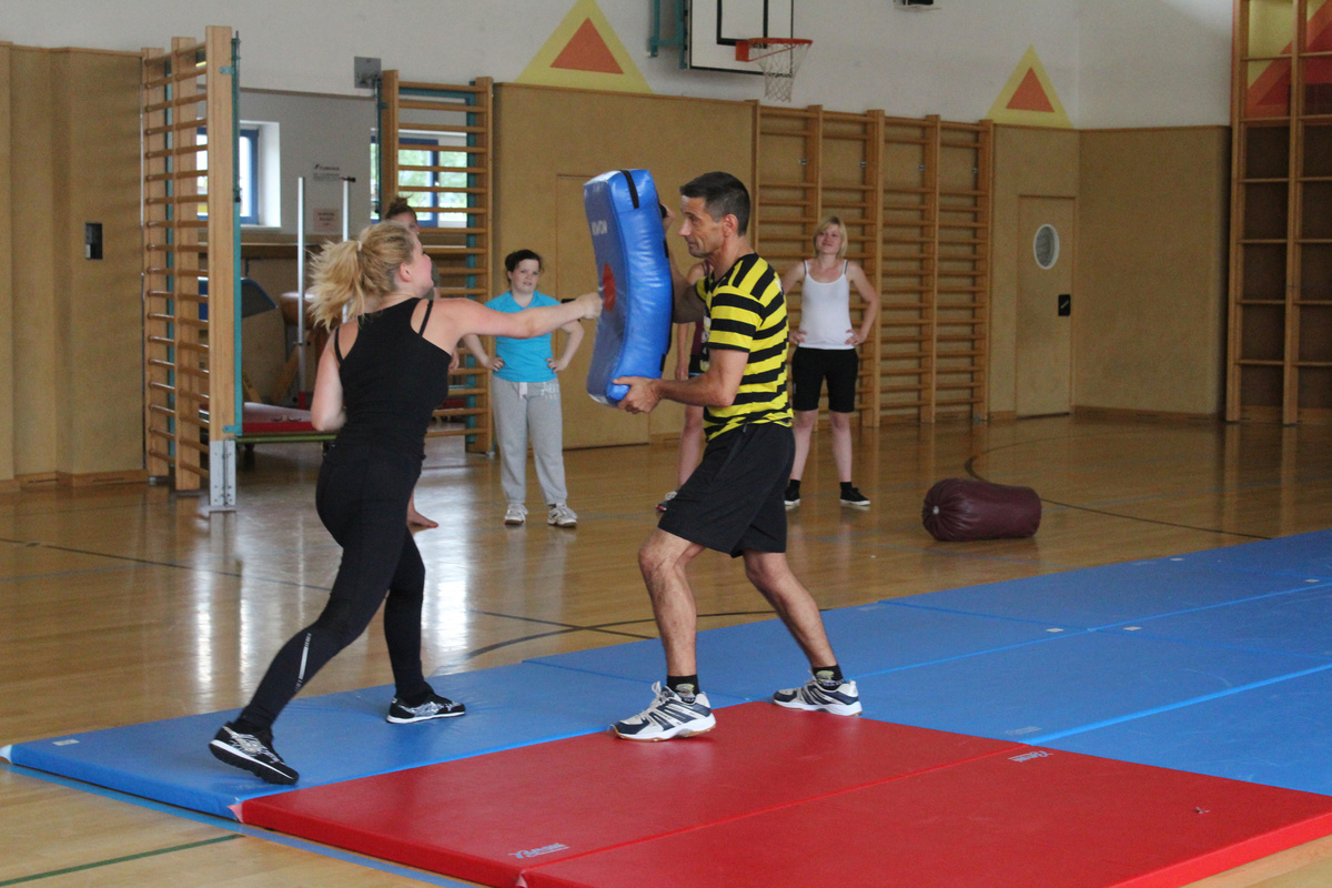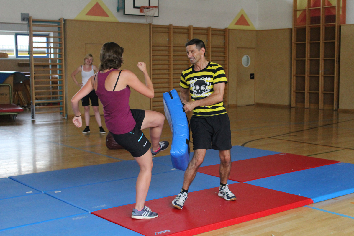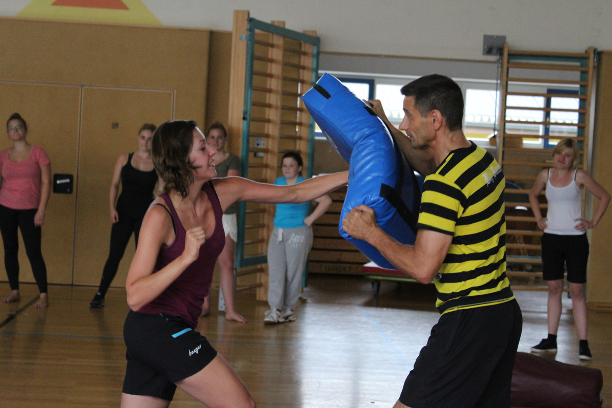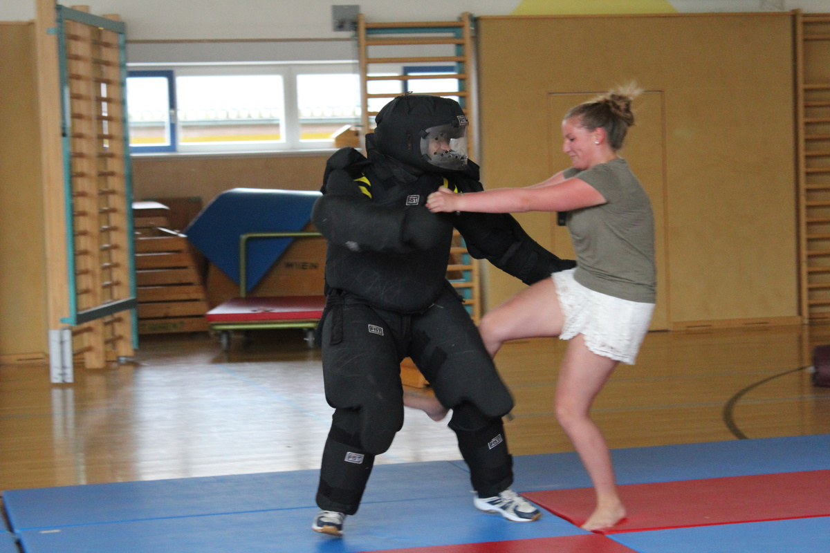 Bevor die Teilnehmerinnen Techniken wie Beinschlag oder Faustschlag lernen, spricht Klaus viel über theoretisches Hintergrundverständnis und rechtliche bzw. gesetzliche Belange. Ab wann darf ich physische Maßnahmen einleiten und wie weit darf ich gehen? Wann muss ich Hilfe holen? Allein bei der Klärung dieser Fragen wird den jungen Frauen schon viel Unsicherheit genommen. Unterstützt wird dies durch viele Erfahrungsberichte von Klaus aus seiner Securitytätigkeit. Die Selbstverteidigungskurse finden in allen Landjugendbezirken statt. Als nächstes wird Klaus den Damen der Landjugend Bezirk Pinzgau am 13. August Tipps und Tricks in Sachen eigene Sicherheit und Verteidigung zeigen.