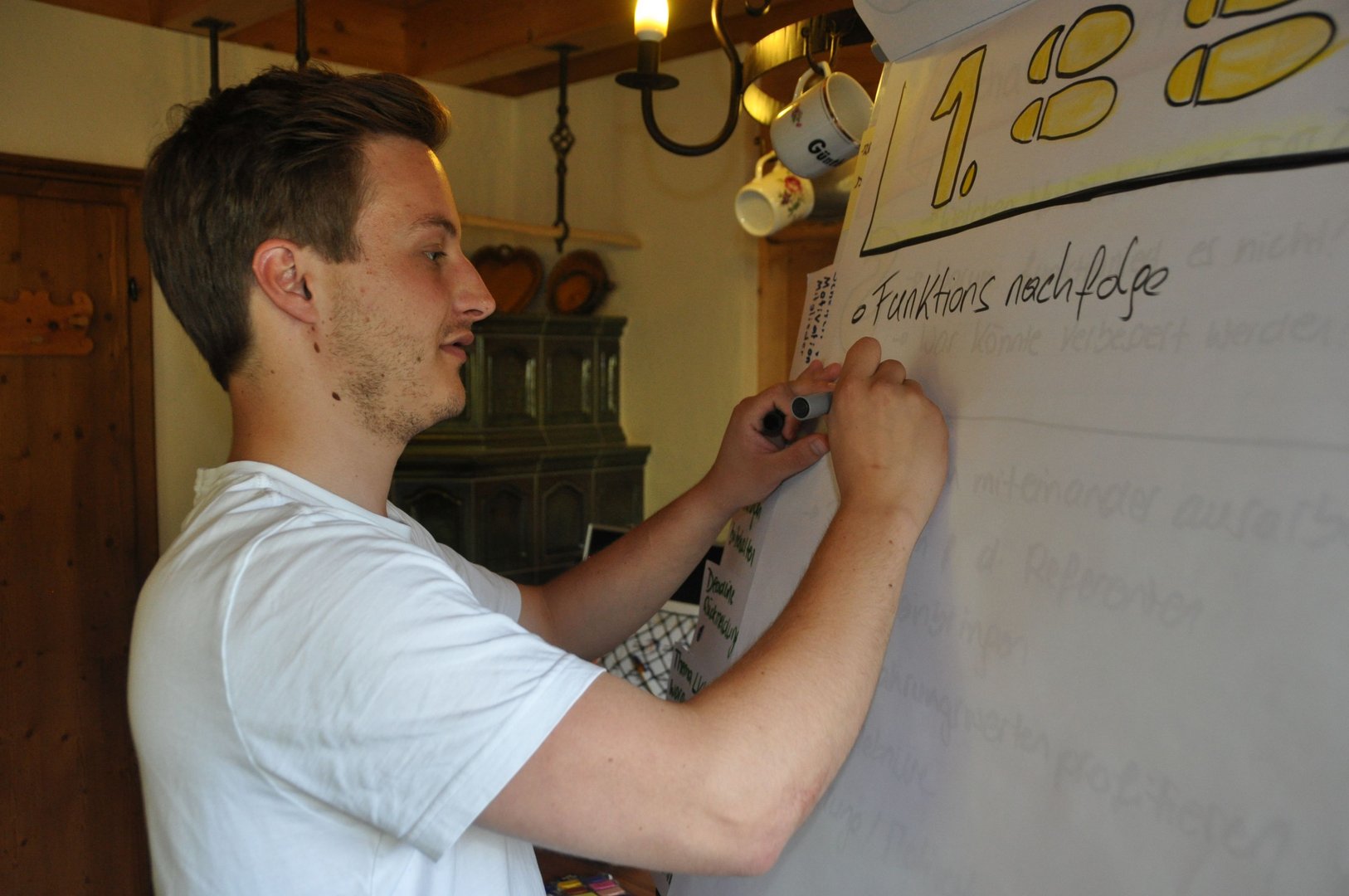 Kommunikation als Erfolgsfaktor Gleich am Samstagmorgen wurde mit dem ersten großen Bereich begonnen – der Stärkung des Teamgeistes. Wie können wir als Team erfolgreich sein? Was sind unsere gegenseitigen Erwartungen und Wünsche? Was sind unsere Ziele? Zur Beantwortung dieser zentralen Fragen wurde Kommunikationstrainer Hannes Horngacher eingeladen. „Für eine reibungslose Zusammenarbeit ist vor allem gegenseitiges Vertrauen, Verständnis und Wertschätzung unerlässlich. Unter diesen Aspekten kann auf einer Augenhöhe kommuniziert werden“, erklärt Horngacher bei seiner Einleitung. Und weiter: „Die digitale Welt hat viele Vorteile, doch sie kann nicht das persönliche Gespräch ersetzten.“ Das Thema Kommunikation und Motivation ist facettenreich, stand am Ende des Workshops fest. Sei es bei der Arbeitsaufteilung, der Funktionärssuche oder der Zusammenarbeit zwischen verschiedenen Teams. Ohne der Berücksichtigung dieser Punkte sind Missverständnisse und fehlende Begeisterung vorprogrammiert. Landesobmann Maximilian Brugger weiß aus Erfahrung: „Eine Klausur wie diese, wo nicht nur viel gearbeitet wird, sondern auch der Spaß nicht zu kurz kommt, ist die perfekte Voraussetzung für gutes Teambuilding.“ Aufbauend auf diesen Workshop war die auch die Evaluierung der vergangenen Funktionsperiode und die Ableitung erster Schritte daraus Part der Klausur. Pläne für die Zukunft Der Sonntag wurde intensiv für weitere Planungen genutzt. Gemeinsam mit den BezirksfunktionärInnen wurde das komplette Jahresprogramm adaptiert, ergänzt und überarbeitet. Vor allem die Bewerbe wurden genau unter die Lupe genommen. Was funktioniert? Wo gibt es noch Potential? Oder überhaupt ganz anders gestalten? Angestrengt wurde bereits geleistetes überdacht und analysiert, bis Maßnahmen und erste Schritte festgelegt werden konnten. „Für die Umsetzung eines erfolgreichen Jahresprogrammes braucht es die Mithilfe und Unterstützung aller FunktionärInnen auf Orts-, Bezirks- und Landesebene“, erzählt Landesleiterin Johanna Schafflinger. „In diesen zwei Tagen haben wir den perfekten Grundstein für ein erfolgreiches Jahr 2020 gelegt.“ „Das sehr intensive Wochenende war für jeden einzelnen eine große Bereicherung“, lautete der Tenor des Teams. Voll bestärkt geht es nun in die Detailplanung für das kommende Jahr. Dazu wird in den nächsten Monaten das Landjugendprogramm 2020 ausgearbeitet. Das Endprodukt wird ein knapp 50-seitiges Programm sein, das zu Beginn des neuen Jahres an die über 7.500 Mitglieder im Bundesland Salzburg ausgesandt wird.
