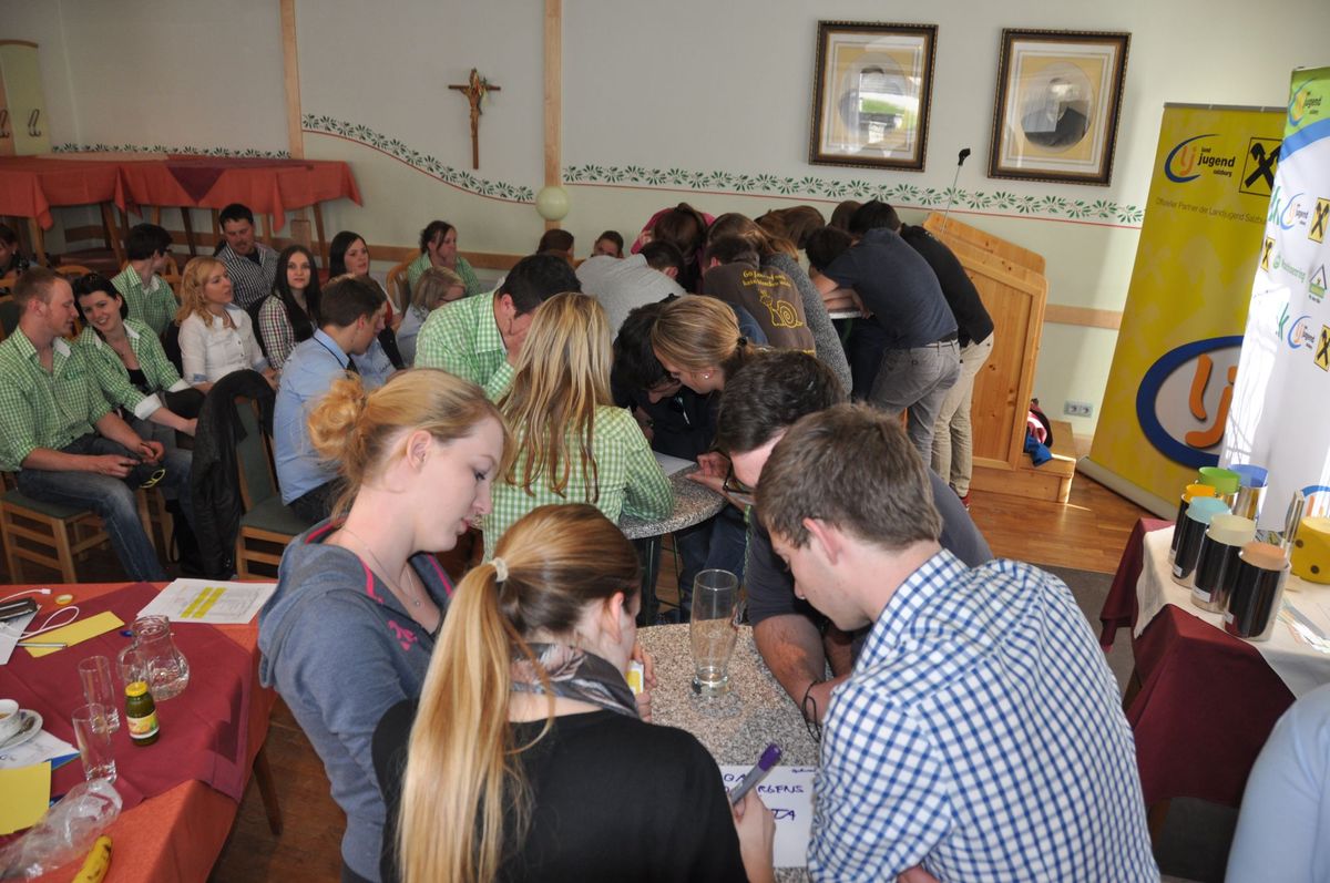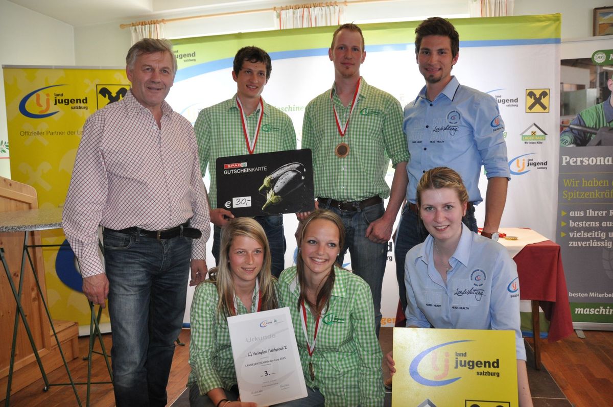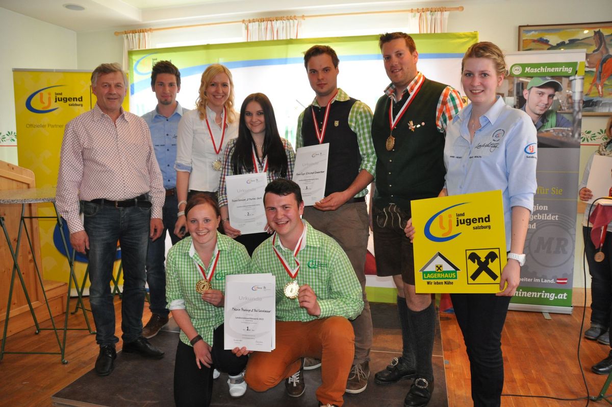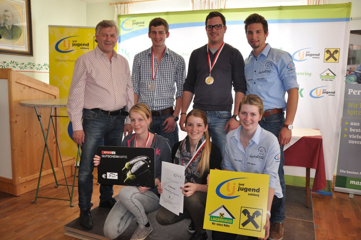 Vielseitige und herausfordernde Stationen verlangten den Teams alles ab. Bei der Station „Englisch & Geografie“ mussten beispielsweise Texte über Städte und Monumente übersetzt und erkannt werden und dessen geografische Lage auf einer Weltkarte bestimmt werden. Die sieben modernen Weltwunder wurden ebenso abgefragt wie Geschehnisse in der Weltpolitik und Wissen über die Österreichische Regierung. Fitness und Geschick bewiesen die TeilnehmerInnen im anschließenden Action-Parcours. Speziell das menschliche Schubkarrenrennen und das Äpfel tauchen kostete jede Menge Substanz. Die Mischung aus Herausforderung und Wissensabfrage gepaart mit jeder Menge Spaß fand auf großen Anklang bei den jungen Damen und Herren. Nach dem Grunddurchgang (Stationsbetrieb und Actionparcours) folgte das 4er-Cup Finale. Die vier besten Teams lieferten sich einen spannenden Schlagabtausch: Wer kennt die meisten Song-Contest-Gewinner? Wer weiß die meisten Genussregionen Österreichs? Wer ist während der „Perfekten-Minute“ am Schnellsten? Nicht zu toppen war das Team aus Saalfelden. Mit einem tollen Finish schnappten sie sich hauchdünn den Sieg vor der Landjugend Hallwang. Der dritte Rang ging an die Landjugend Mariapfarr-Weißpriach. Die ersten beiden Teams vertreten Salzburg beim diesjährigen Bundesentscheid in Kärnten.