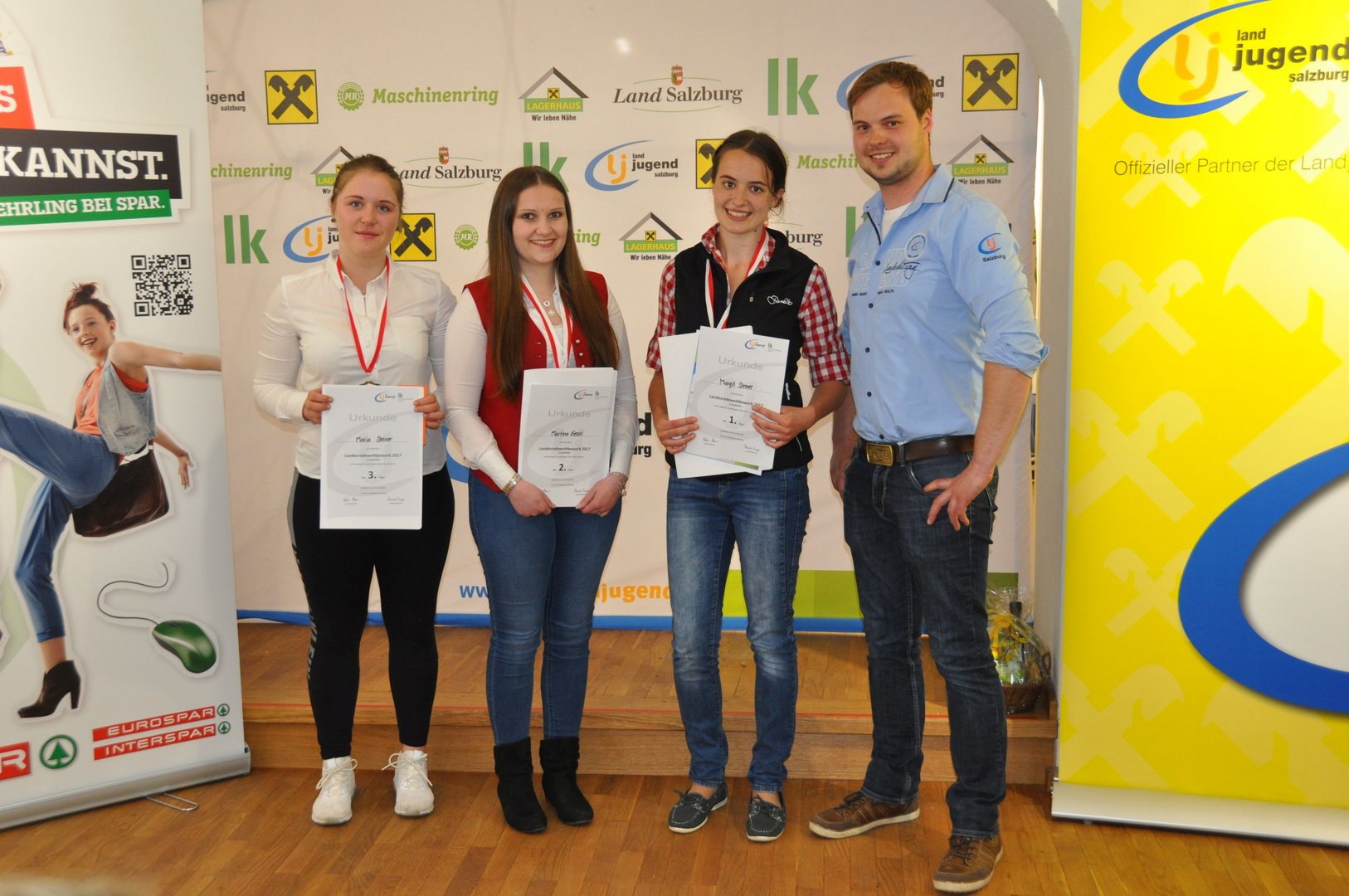 In der Spontanrede lieferten sich die TeilnehmerInnen einen eindrucksvollen Schlagabtausch. Mit vier überzeugenden Reden feierte Karoline Entfellner (Köstendorf) ihren Landessieg. Paul Schreilechner (Mariapfarr) und Thomas Kreiseder (Berndorf) belegten die Ränge 2 und 3. LWK-Rat Dipl.-Ing. Bernhard Draxl lobte die Leistung der Jugendlichen: „Es bedarf viel Mut vor Publikum zu reden. Die Themen, die die TeilnehmerInnen angreifen sind brandaktuell, mutig und sehr professionell aufbereitet“. Die beiden besten RednerInnen einer jeden Kategorie qualifizieren sich für den diesjährigen Bundesentscheid von 13. – 15. Juli 2017 in Oberösterreich. Ein großer Dank gilt der Landjugend Saalfelden für die reibungslose Planung und Abwicklung des Landesentscheides!