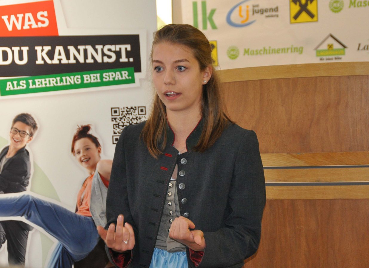 Beim diesjährigen Redewettbewerb trat die Landjugend Piesendorf in hervorragender Manier auf. Besonders die jungen RednerInnen überzeugten mit scharfsinnigen Themen und präziser Wortwahl. Die wohl schwierigste Aufgabe hatte die Jury des Redewettbewerbes. LWK-Rat Dipl.-Ing. Bernhard Draxl, BBK-Obmann Klaus Vitzthum, Lehrerin der HWS Bruck, Dipl-Päd. Ing. Christine Zandl und Landesleiterin der Tiroler Jungbauernschaft/Landjugend Martina Brunner staunten nicht schlecht über die vorbereiteten Reden und vor allem über die Spontanreden. Bei den vorbereiteten Reden über 18 Jahren feierte Margit Steiner (Piesendorf) ihren ersten Landessieg vor Martina Gerstl (Schleedorf) und Maria Steiner (Piesendorf). Margit Steiner appellierte in ihrer Rede „Z’frieden sein“, dass gerade die unscheinbaren alltäglichen Momente bewusster genossen werden sollen und nicht Wohlstand der Grund für das Gefühl „zufrieden sein“ verantwortlich ist. Bei der „Vorbereiteten Rede unter 18 Jahren“ siegte Margit Nitsch von der Landjugend Bischofshofen.