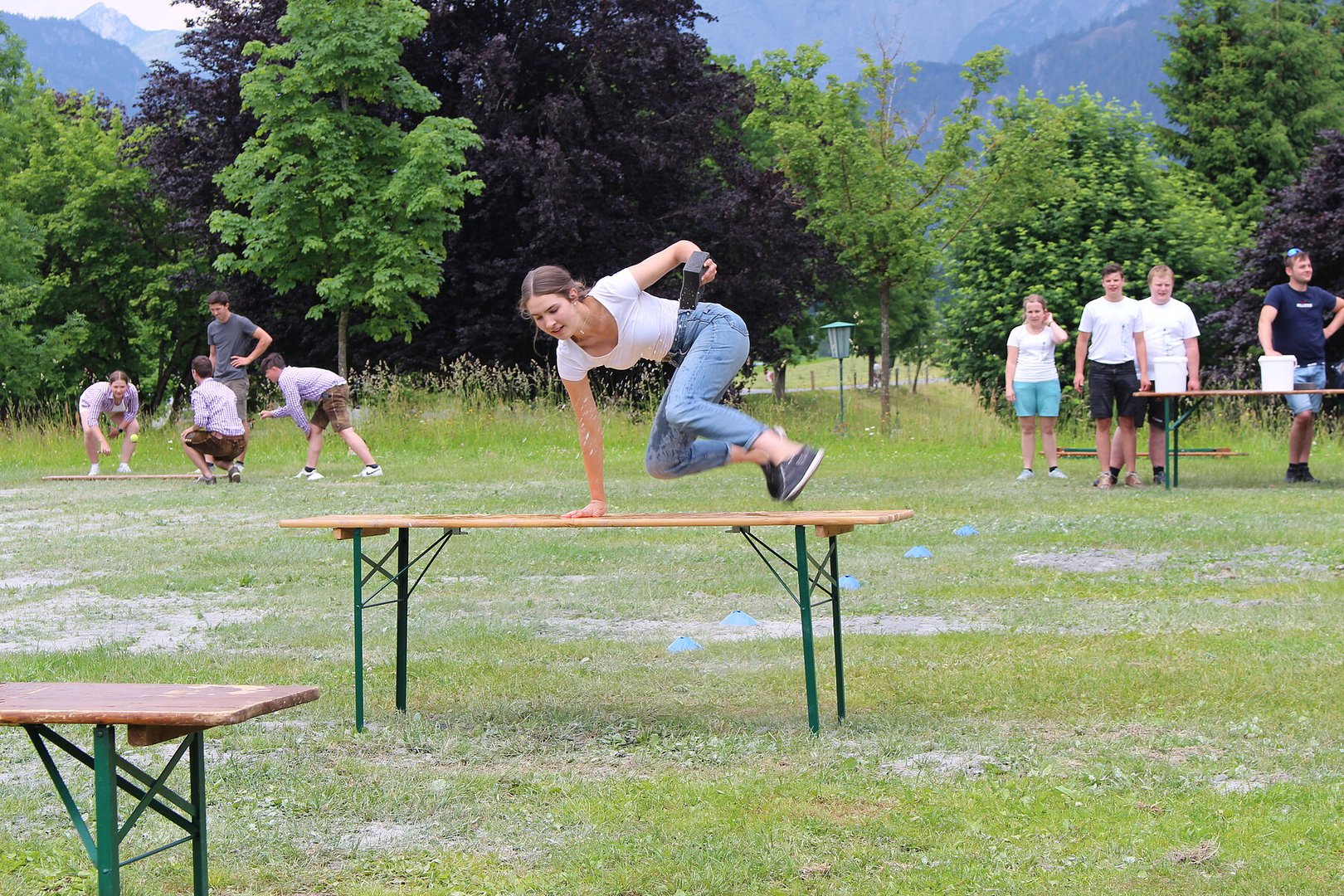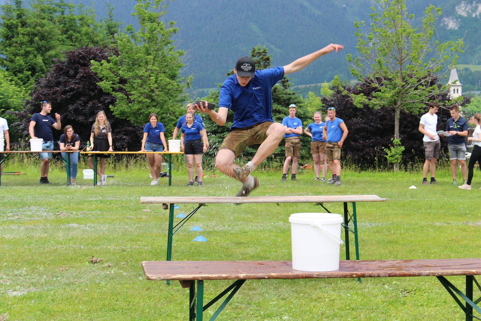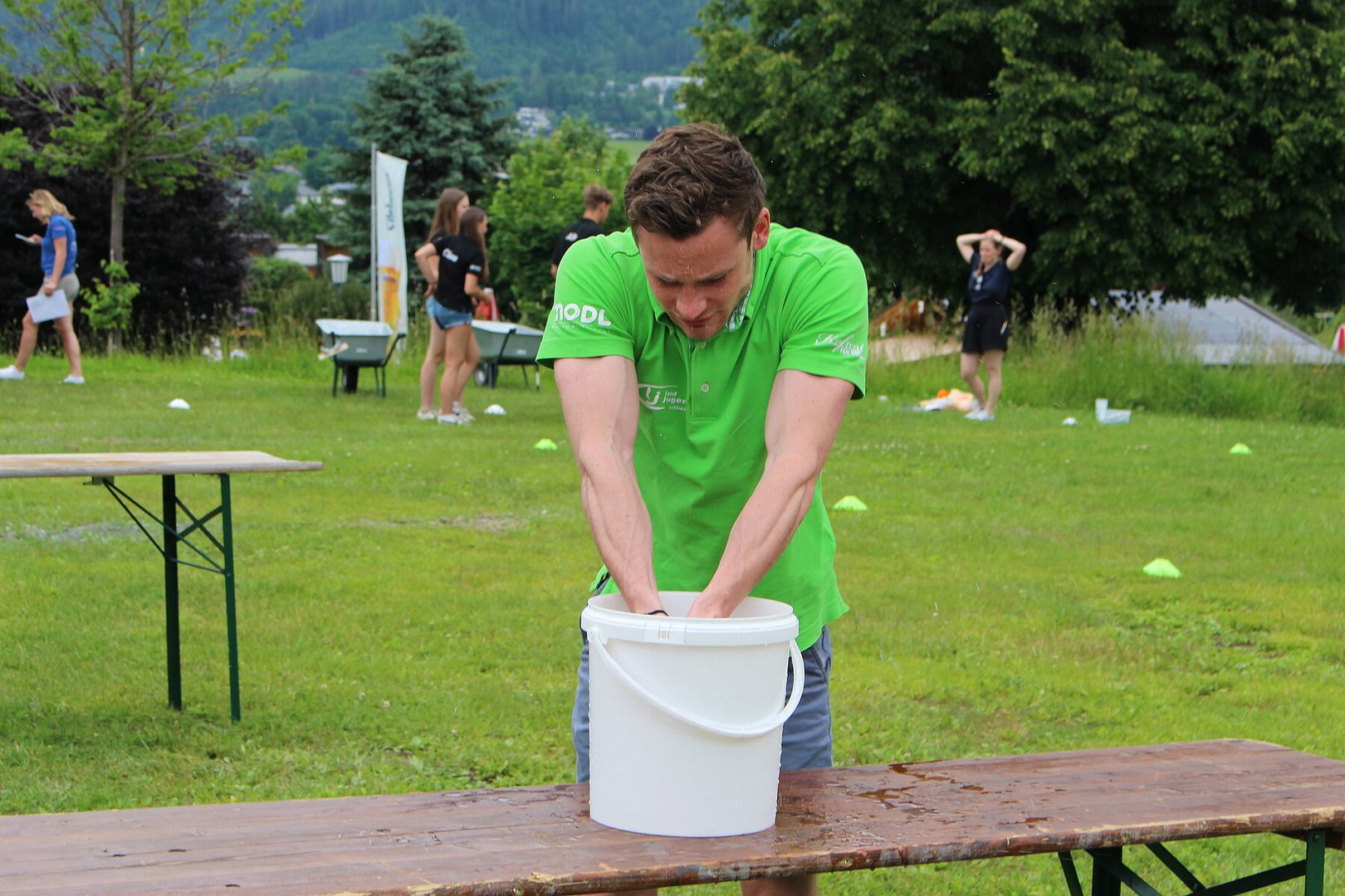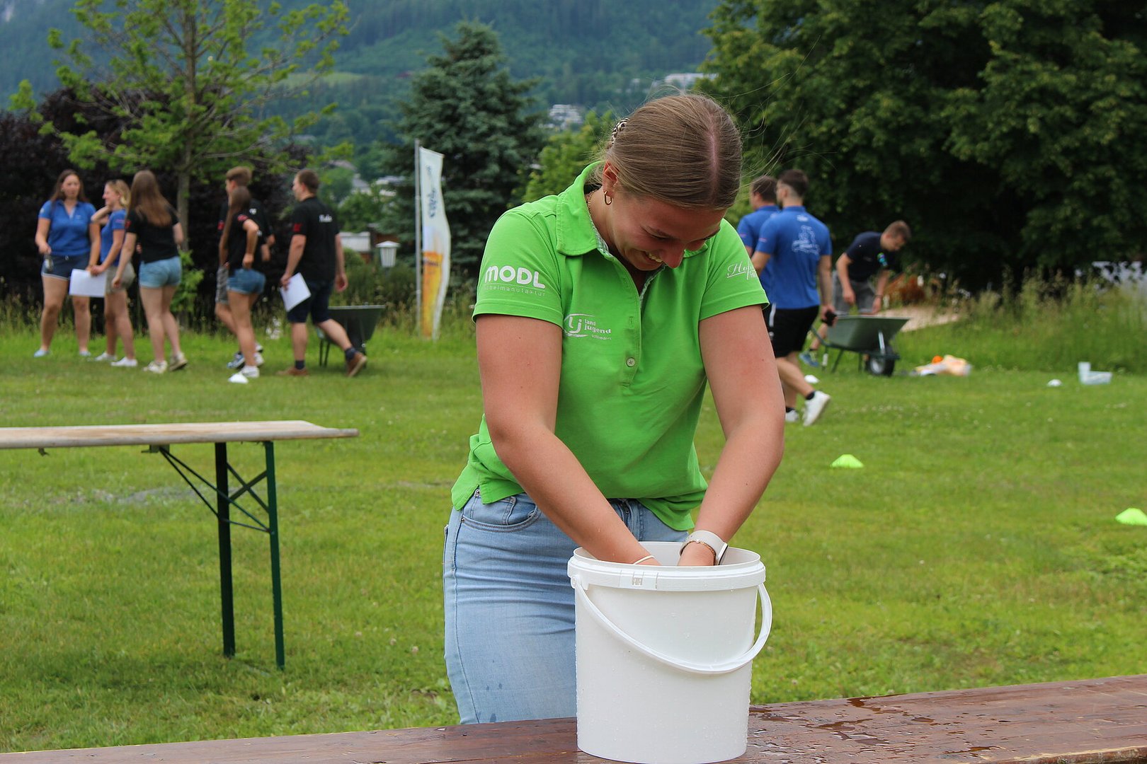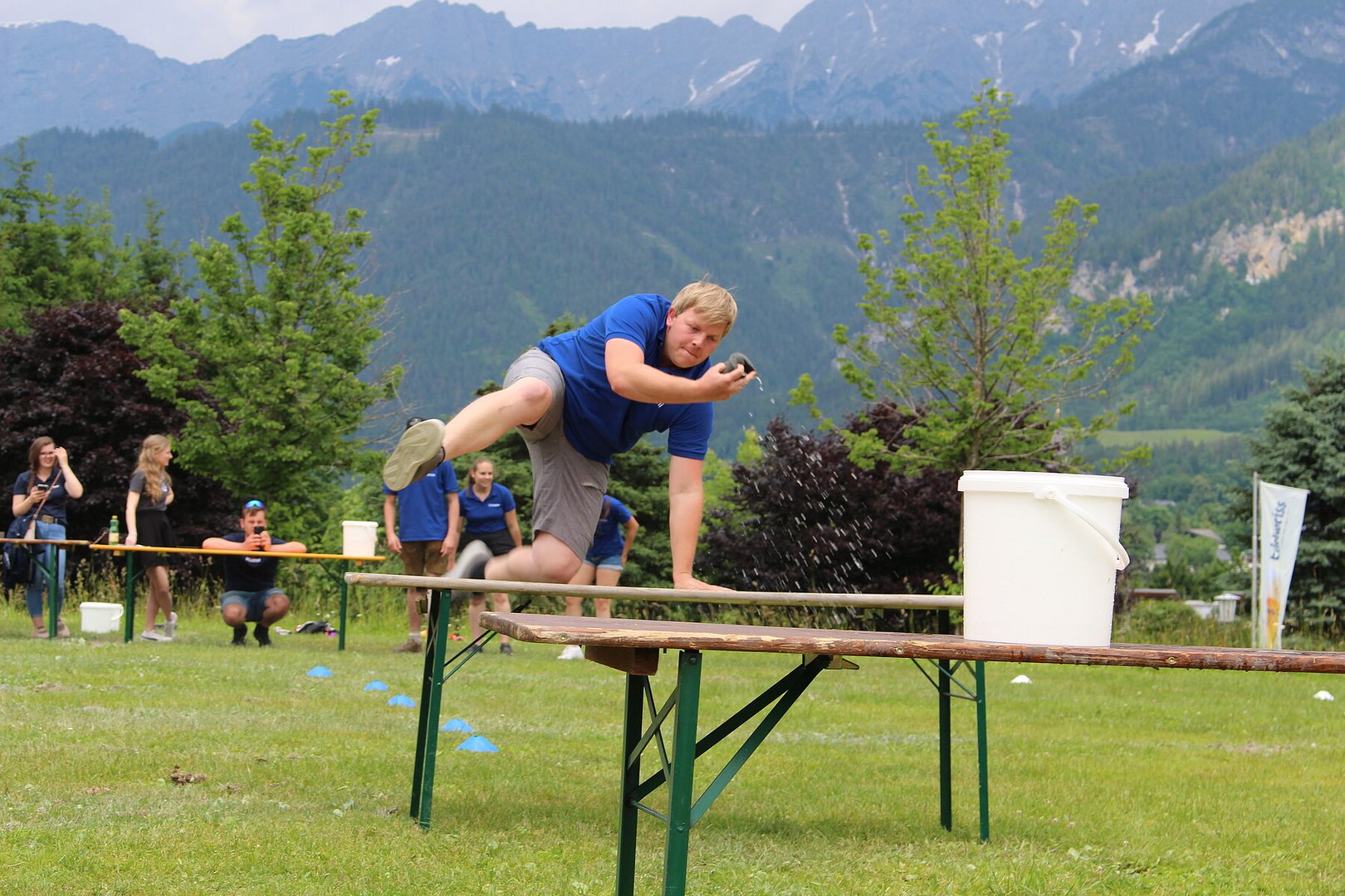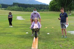 Vielseitige und herausfordernde Stationen verlangten den Teams alles ab. Bei der Station „Team-Quiz“ mussten beispielsweise zwei Teammitglieder eine Legofigur bauen, welche sie nur durch die Anleitung der anderen beiden Teammitglieder beschrieben bekamen. Geschehnisse in der Weltpolitik und Wissen über die österreichische Regierung wurden ebenso abgefragt wie Flüsse, Berge und Besonderheiten Salzburgs. Fitness und Geschick bewiesen die Teams im anschließenden Action-Parcours. Dabei legten die TeilnehmerInnen besonders viel Ehrgeiz an den Tag. Für viel Spaß sorgte dabei das Spiel „Spongebob Schwammkopf“. Die Teammitglieder mussten dabei der Reihe nach einen vollgesogenen Schwamm über einen Parcours zu einem Kübel auf der anderen Seite befördern, das Wasser auspressen und zurücklaufen. Wie bei einem Staffellauf wurde der Schwamm an das nächste Teammitglied übergeben. Ziel war es, so viel Wasser als möglich im gegenüberliegenden Kübel zu sammeln.