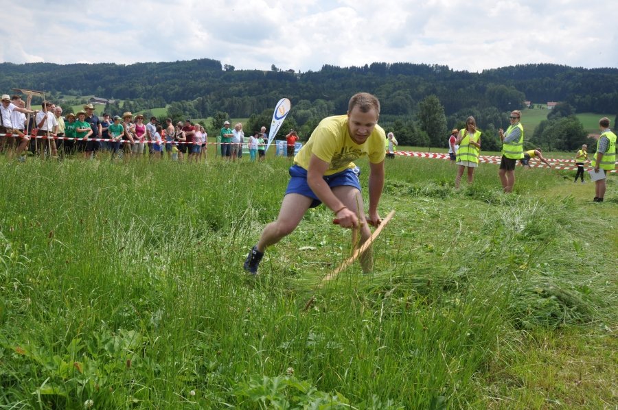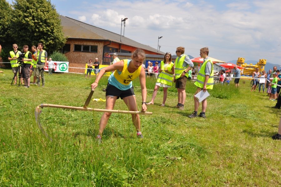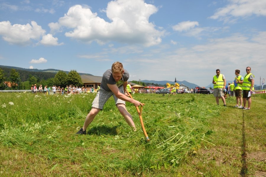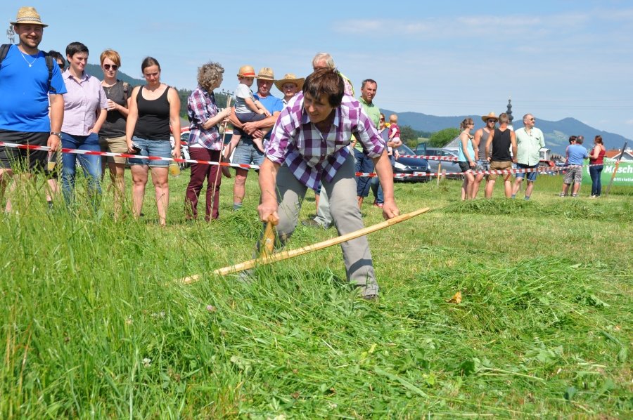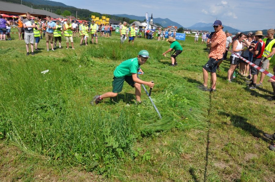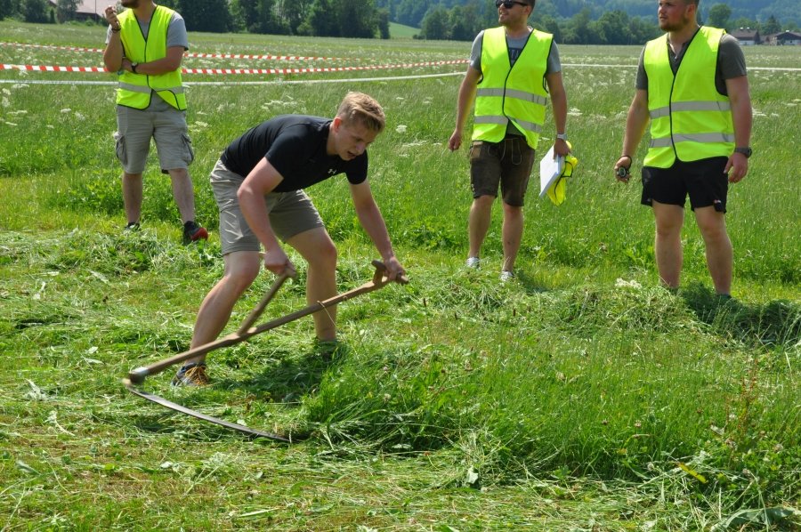Die stärksten Damen hatten 35 m² zu mähen, die Herren 100 m². „Ein faszinierendes Spektakel. Ständig spannende Zwei- oder Dreikämpfe und viel Gelegenheit, die Mäh-Technik kennenzulernen!“ so ein Kommentar der Zuschauer. Es gab tolle sportliche Leistungen ebenso wie eine hervorragende Stimmung, die beim Anfeuern der Sportlerinnen und Sportler zu spüren war. BBK-Obmann Johann Frenkenberger unterstützte neben Heidi Aichriedler, Ortsbäuerin von Thalgau und Franz Winkler, ehemaliger Landesobmann der Landjugend Salzburg, den Chef-Juror Andre Pertiller bei der Bewertung der Leistungen der TeilnehmerInnen. „Besonders die Nachwuchssportler bewiesen sehr viel Kondition. Mähzeiten zwischen zwei und drei Minuten sind eine echte Herausforderung.“, so Frenkenberger, der selbst aus Thalgau kommt. Gestartet wurde in den Kategorien „Traditionelle Sense“ und „Profiklasse“. Bei ersterer sind Wettkampfgeräte bis 90 cm Blattlänge erlaubt. In der Profiklasse kommen Sensen bis zu 135 cm zum Einsatz.