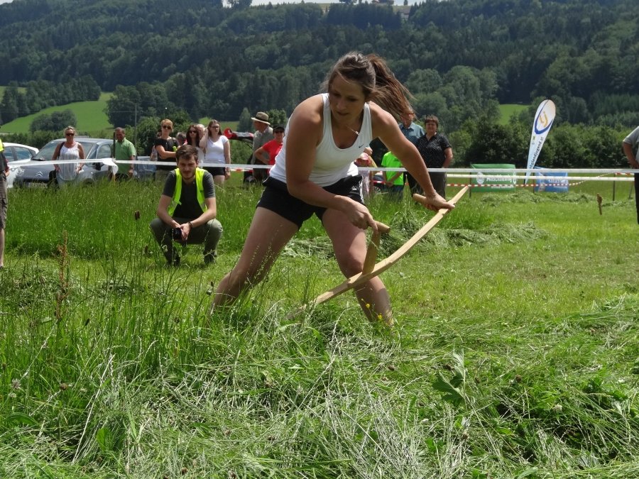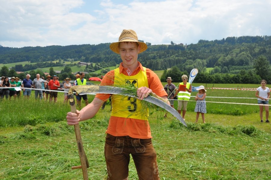 In der Kategorie „Traditionelle Sense“ siegte Bernadette Bamberger aus St. Georgen bei den Damen und Thomas Bachler aus Köstendorf bei den Burschen. Bei den Profiklassen siegte die EM-Gewinnerin des letzten Jahres Elisabeth Schilcher aus Köstendorf. Sie benötigte für die 5x7m große Parzelle nur sagenhafte 56s. Auf die Frage hin, wie sie sich auf diesen Bewerb vorbereitet hat um die 35 m2 in unter einer Minute abzumähen antwortete Schilcher: „Ich gehe morgens laufen und wenn es sich ausgeht auch noch einmal am Abend. Dazu mähe ich jeden Tag ein Stück um mich so optimal wie möglich vor zu bereiten. Wenn Zeit ist, trainieren wir auch gemeinsam“ Bei den Herren siegte Matthias Huber von der Landjugend Michaelbeuern. Mit 2min 54s blieb er unter der magischen drei Minuten-Grenze.