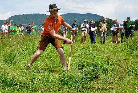 Starke Leistungen der Teilnehmer:innen beim diesjährigen Landesentscheid Sensenmähen und der Agrar- & Genussolympiade