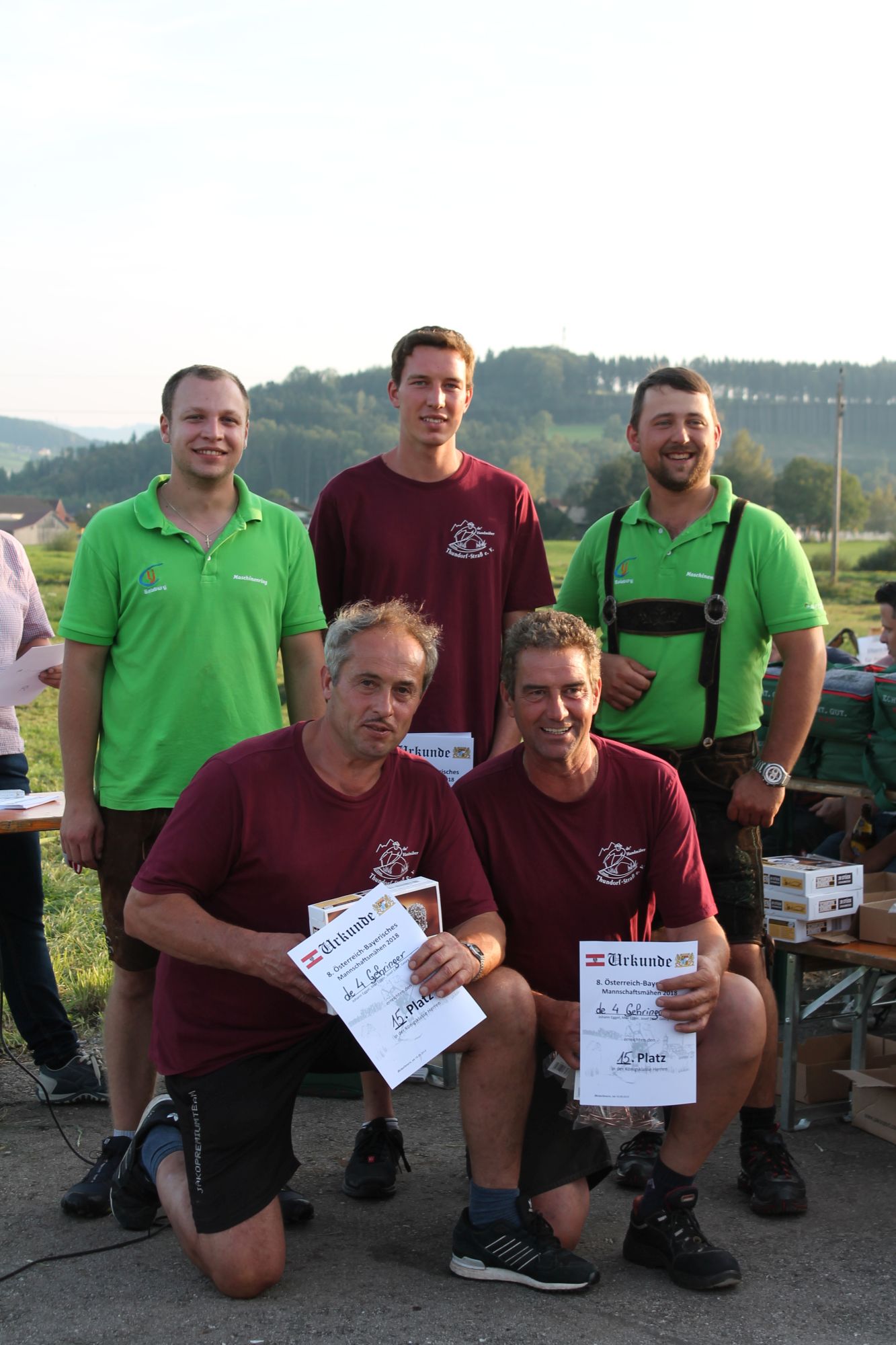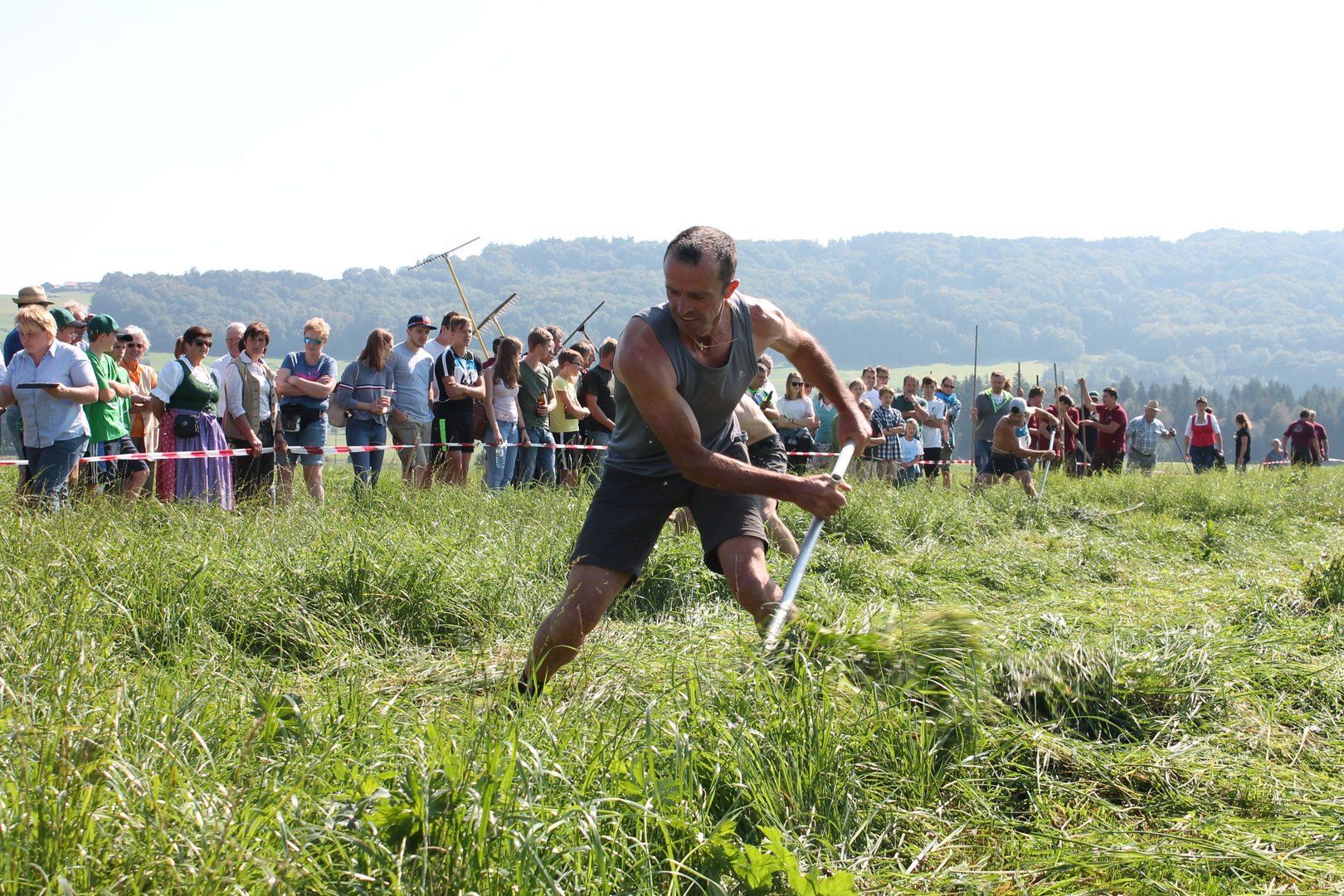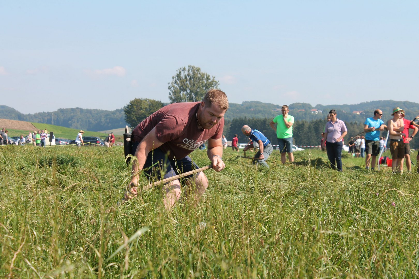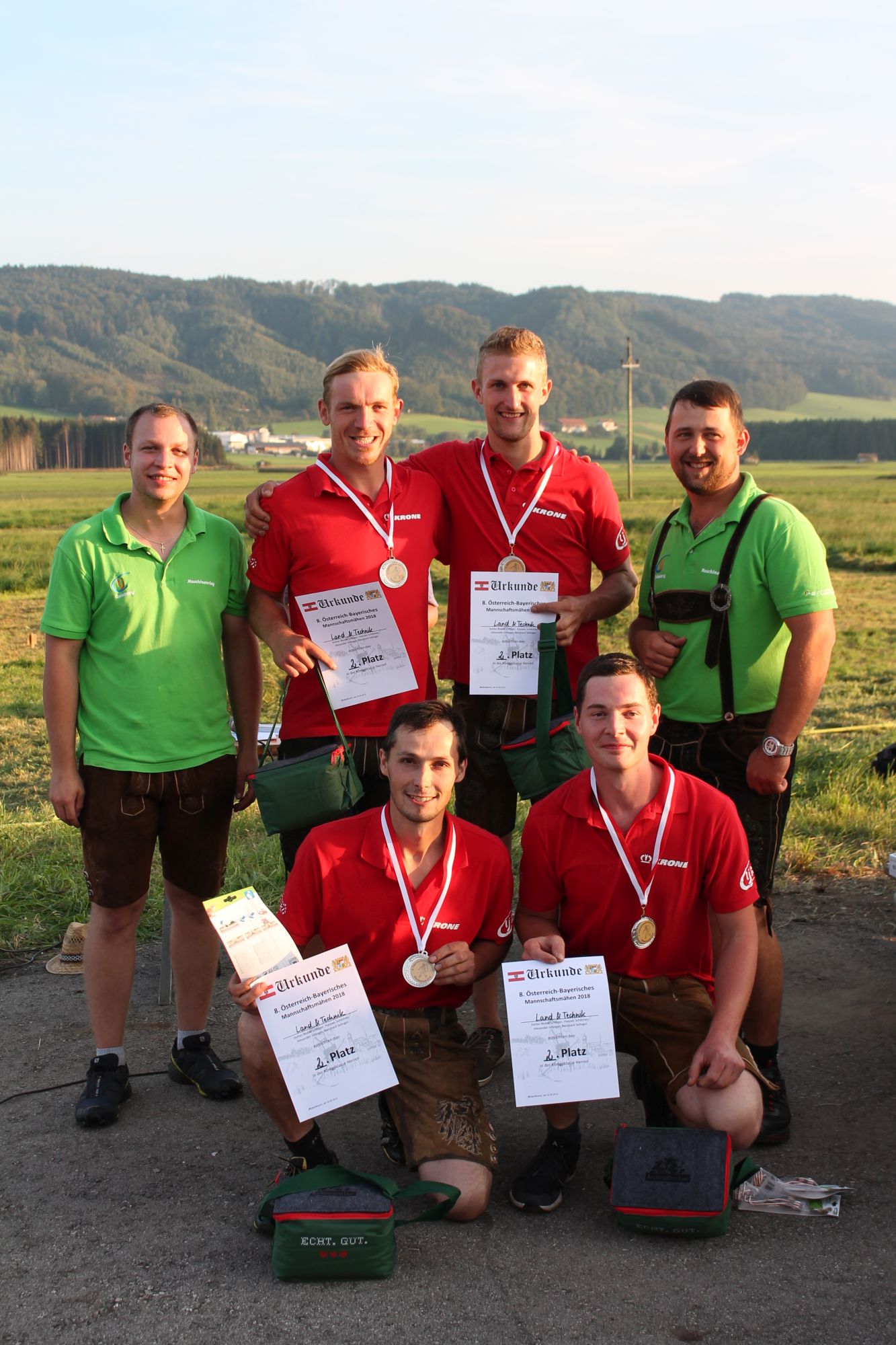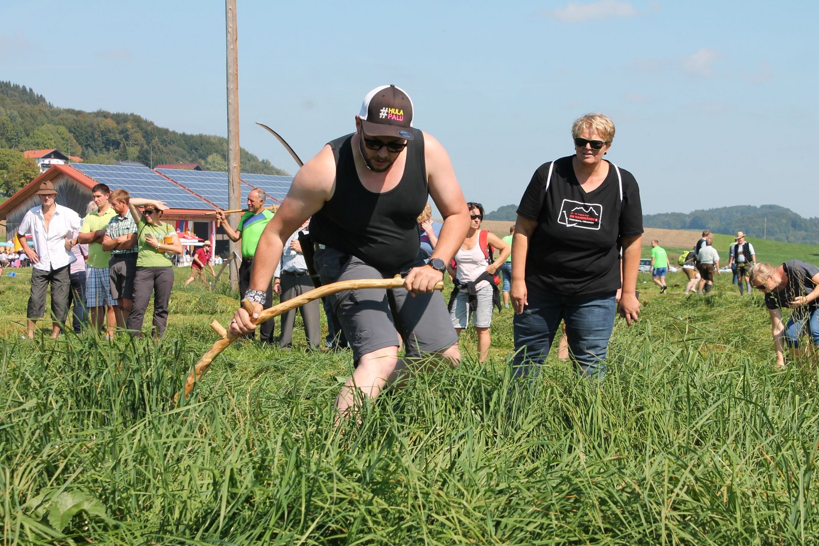 Am Sonntag, den 16. September 2018 fand das Österreich-Bayerische Mannschaftsmähen in Michaelbeuern statt. Über 160 TeilnehmerInnen aus der Schweiz, Slowenien, dem Baskenland, Südtirol und Österreich kämpften um den Meisterschaftstitel. Anders als bei den Landes- oder Bundesentscheiden der Landjugend wird beim Österreich-Bayerischen Mannschaftsmähen nicht einzeln sondern in 4er-Teams gestartet. In vier verschiedenen Kategorien kann teilgenommen werden. Die Königsklasse Herren (Sensenblattlänge über 90 cm) mäht dabei eine Fläche von 10 x 20 m und die Damen 8 x 15 m. In dieser Kategorie kommen Sensen bis zu 135 cm zum Einsatz. In der Allgemeinen Klasse (Sensenblattlänge unter 90 cm) sind Flächen von 8 x 15 m für die Herren und 6 x 10 m für die Damen zu mähen. „Auf ein gegebenes Signal beginnt der 1. Mäher der jeweiligen Mannschaft mit dem Mähen. Sobald dieser die entsprechende Markierung, die halbe Strecke der Parzellenlänge, mit der Sense erreicht hat, gibt ein zugeteilter Zeitnehmer ein deutliches Handzeichen zum Start für den zweiten Mäher der Mannschaft. Dies wiederholt sich auch bei dem dritten und vierten Mäher. Nachdem der letzte Mäher das Mähen beendet hat, wird das Ende durch ein Handzeichen angezeigt“, erklärt Teilnehmer und Organisator Matthias Huber (Landjugend Michaelbeuern) den Ablauf des Mannschaftsmähens. „Eine weitere Besonderheit des Wettbewerbes ist die Bewertung der Mahd. Diese muss gerade und gleichmäßig verlaufen. Ist die Mahd bewertet, wird das Mähgut entfernt und die Schiedsrichterkommission, bestehend aus vier Schiedsrichtern, bewertet dann die Sauberkeit“, erklärt Chef-Juror Andre Pertiller (Eugendorf) weiter.