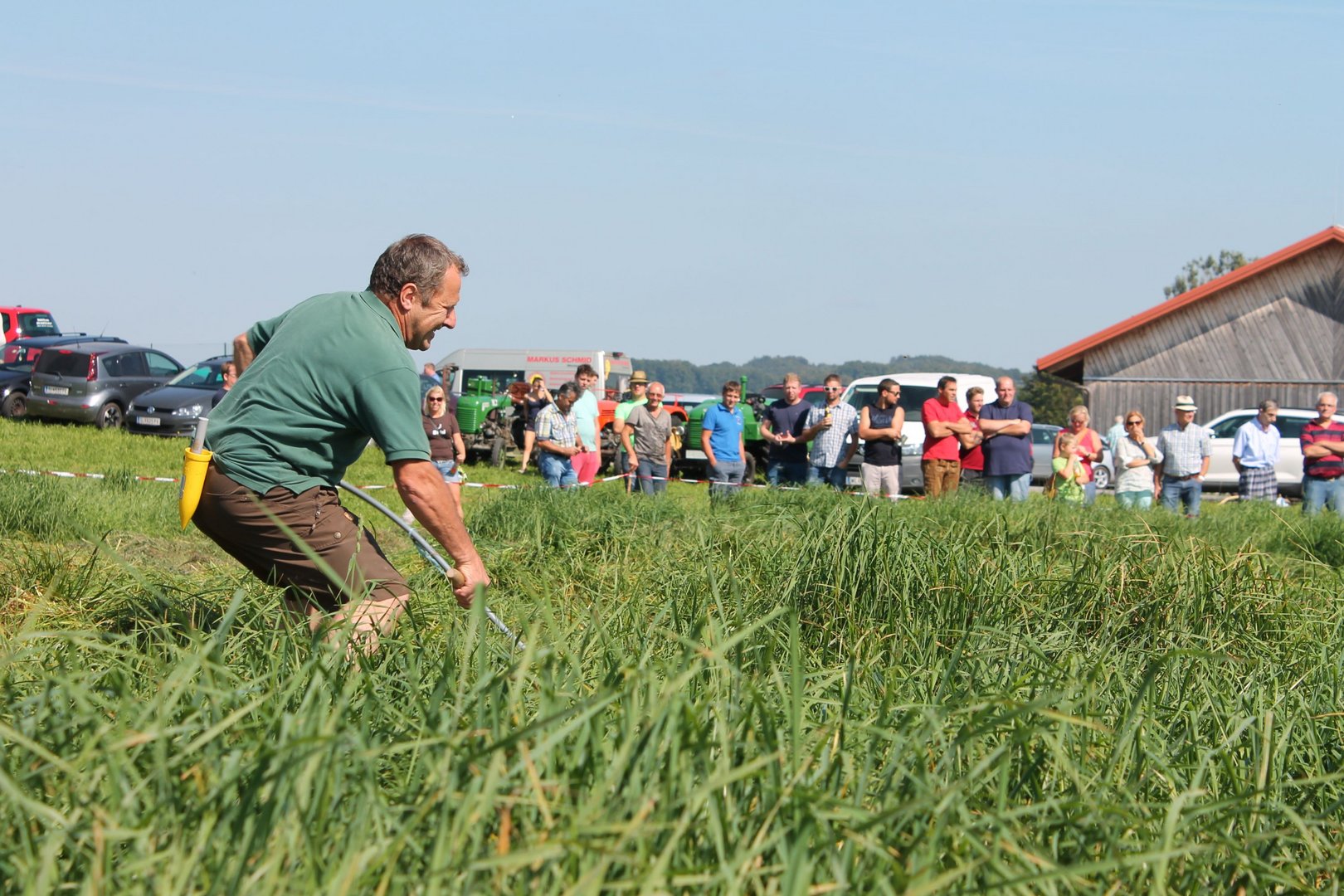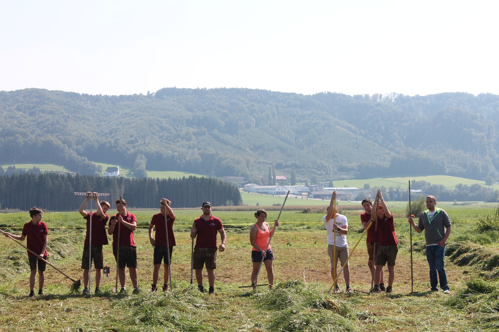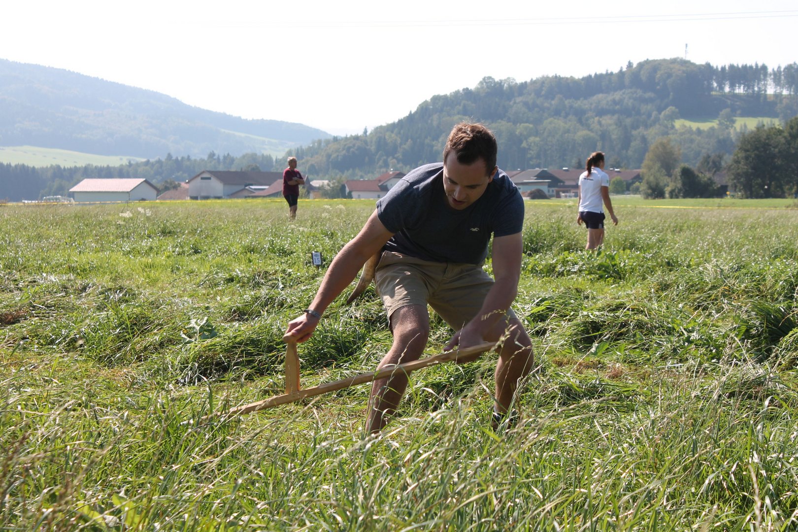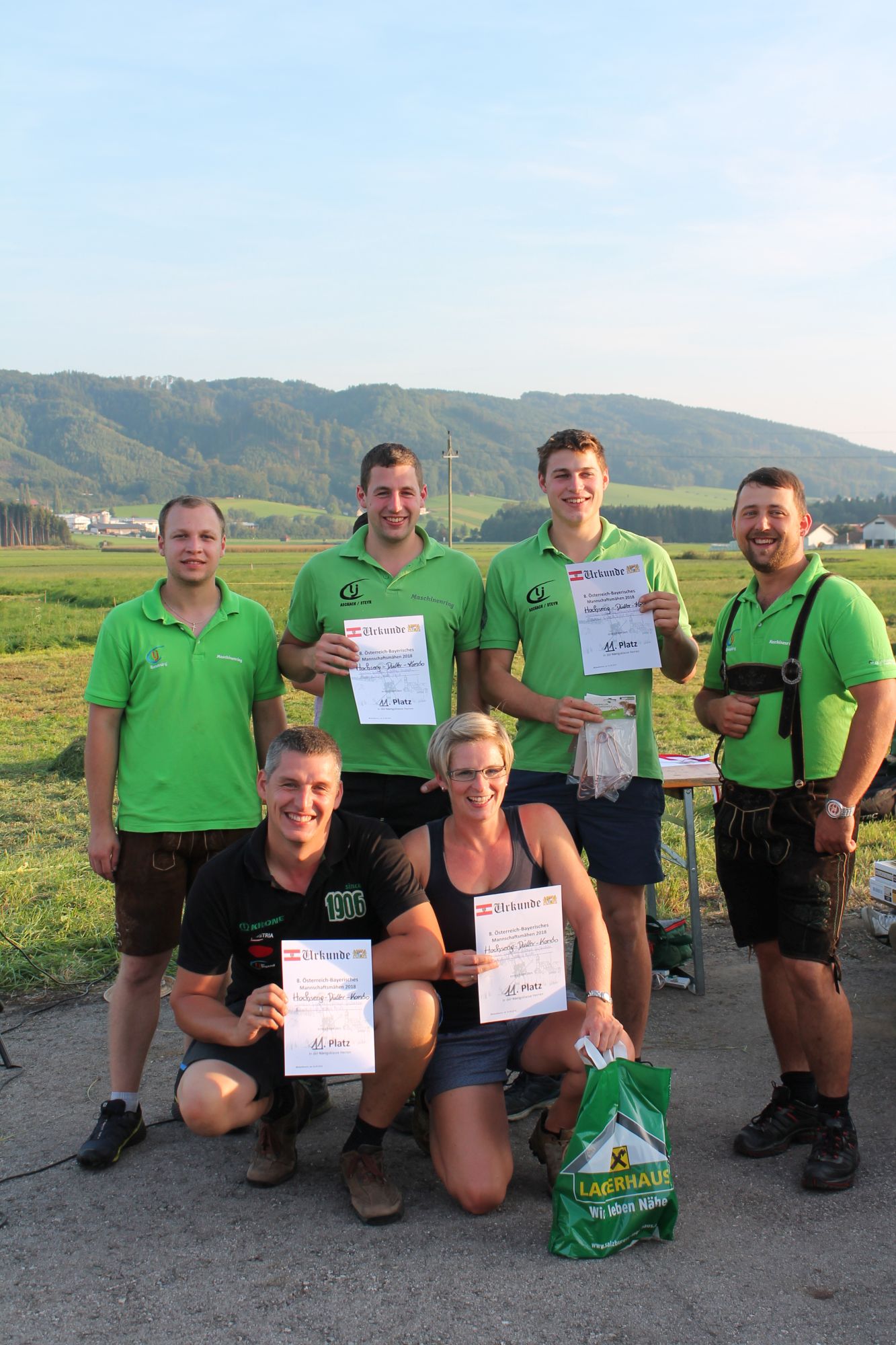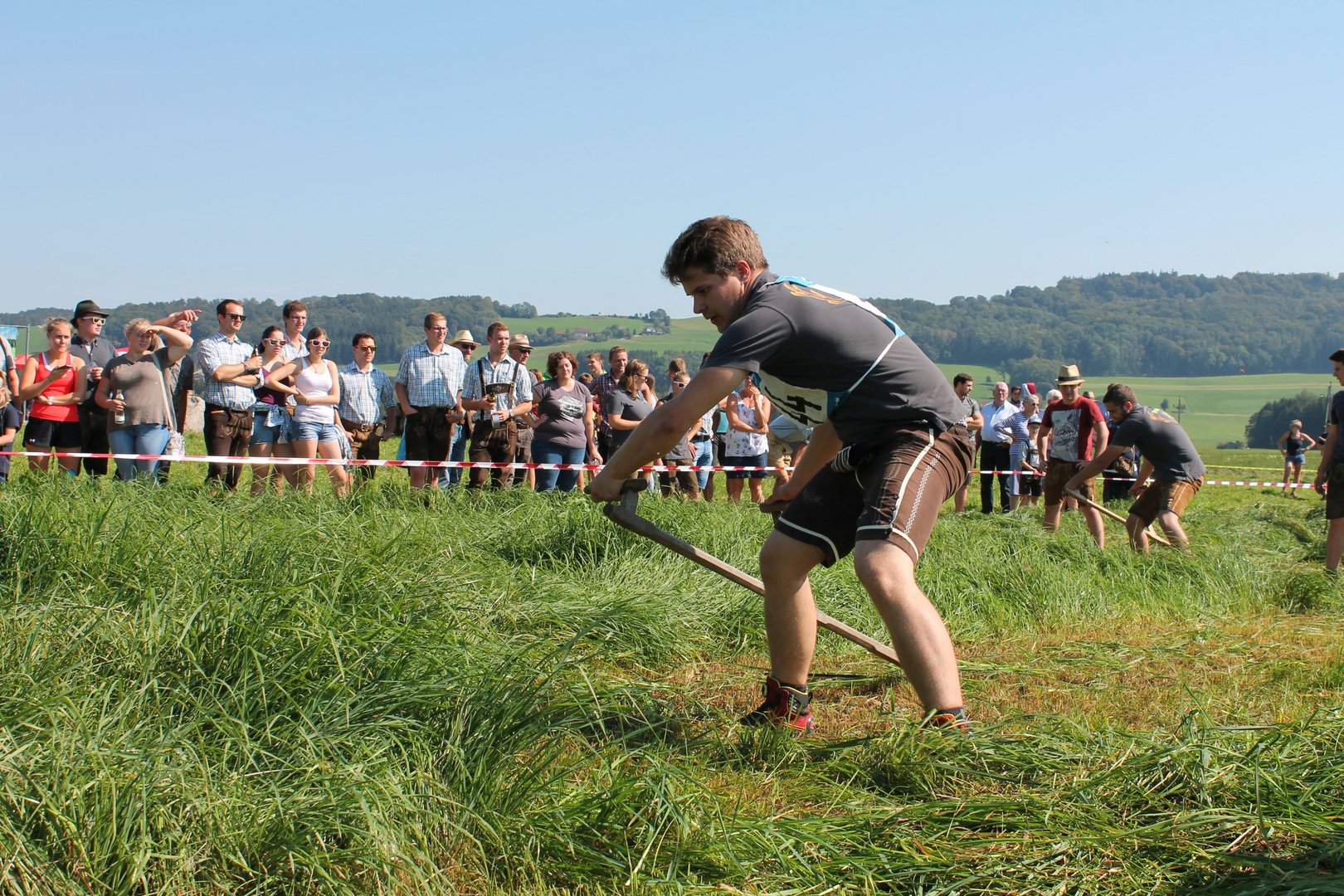 Am Sonntag, den 16. September 2018 fand das Österreich-Bayerische Mannschaftsmähen in Michaelbeuern statt. Über 160 TeilnehmerInnen aus der Schweiz, Slowenien, dem Baskenland, Südtirol und Österreich kämpften um den Meisterschaftstitel. Anders als bei den Landes- oder Bundesentscheiden der Landjugend wird beim Österreich-Bayerischen Mannschaftsmähen nicht einzeln sondern in 4er-Teams gestartet. In vier verschiedenen Kategorien kann teilgenommen werden. Die Königsklasse Herren (Sensenblattlänge über 90 cm) mäht dabei eine Fläche von 10 x 20 m und die Damen 8 x 15 m. In dieser Kategorie kommen Sensen bis zu 135 cm zum Einsatz. In der Allgemeinen Klasse (Sensenblattlänge unter 90 cm) sind Flächen von 8 x 15 m für die Herren und 6 x 10 m für die Damen zu mähen. „Auf ein gegebenes Signal beginnt der 1. Mäher der jeweiligen Mannschaft mit dem Mähen. Sobald dieser die entsprechende Markierung, die halbe Strecke der Parzellenlänge, mit der Sense erreicht hat, gibt ein zugeteilter Zeitnehmer ein deutliches Handzeichen zum Start für den zweiten Mäher der Mannschaft. Dies wiederholt sich auch bei dem dritten und vierten Mäher. Nachdem der letzte Mäher das Mähen beendet hat, wird das Ende durch ein Handzeichen angezeigt“, erklärt Teilnehmer und Organisator Matthias Huber (Landjugend Michaelbeuern) den Ablauf des Mannschaftsmähens. „Eine weitere Besonderheit des Wettbewerbes ist die Bewertung der Mahd. Diese muss gerade und gleichmäßig verlaufen. Ist die Mahd bewertet, wird das Mähgut entfernt und die Schiedsrichterkommission, bestehend aus vier Schiedsrichtern, bewertet dann die Sauberkeit“, erklärt Chef-Juror Andre Pertiller (Eugendorf) weiter.