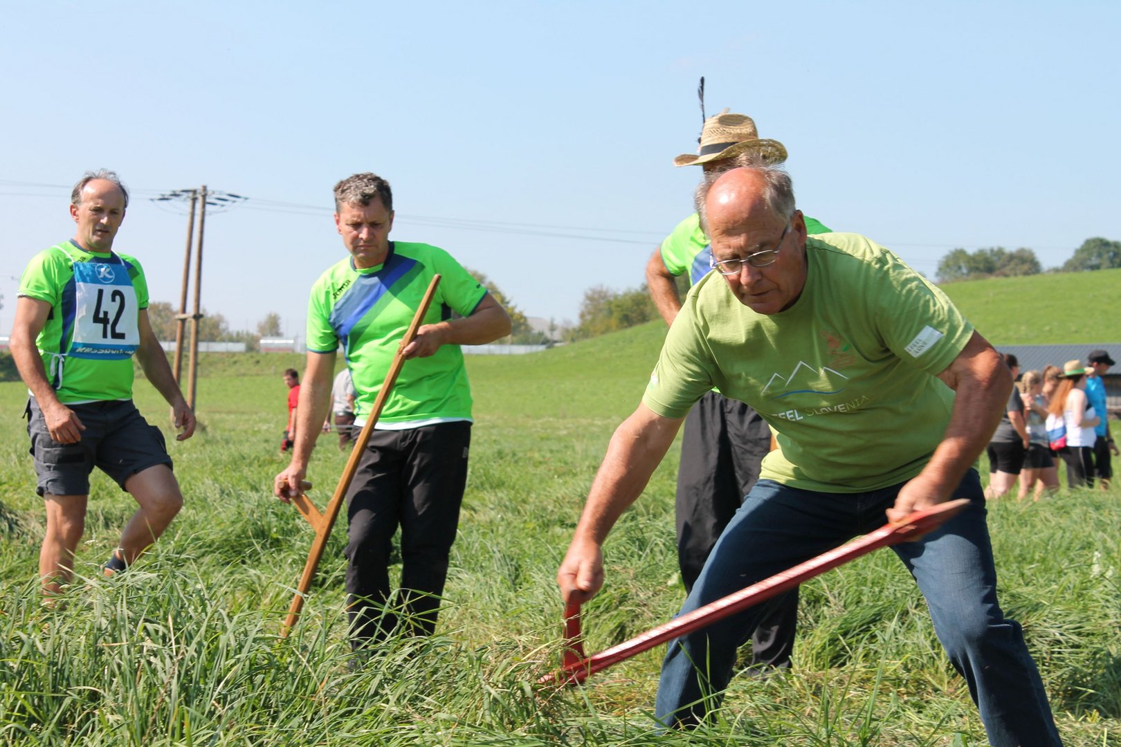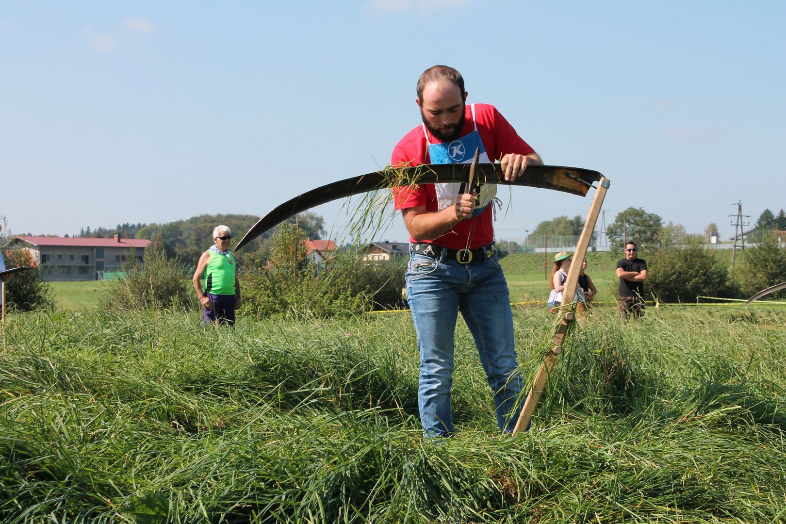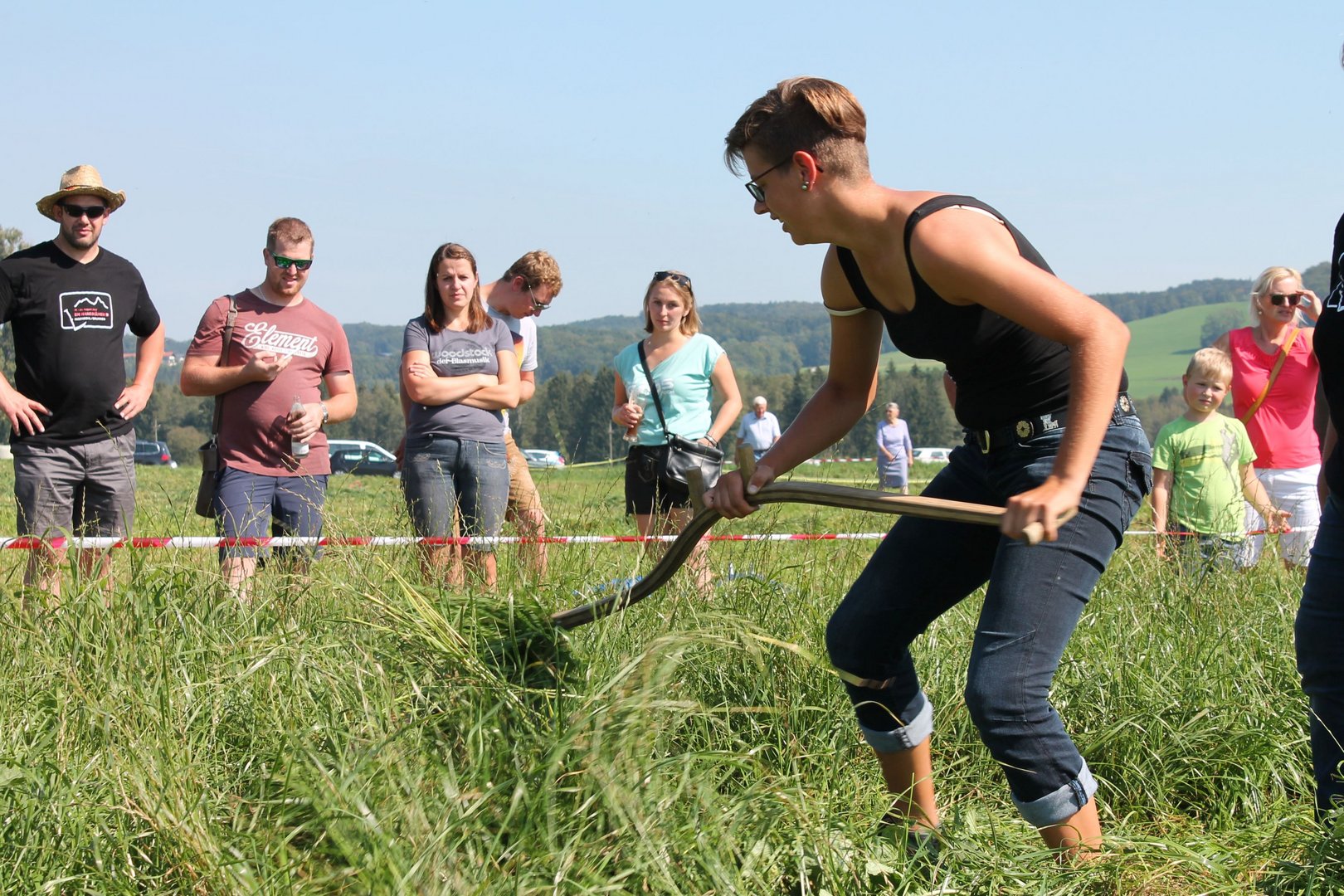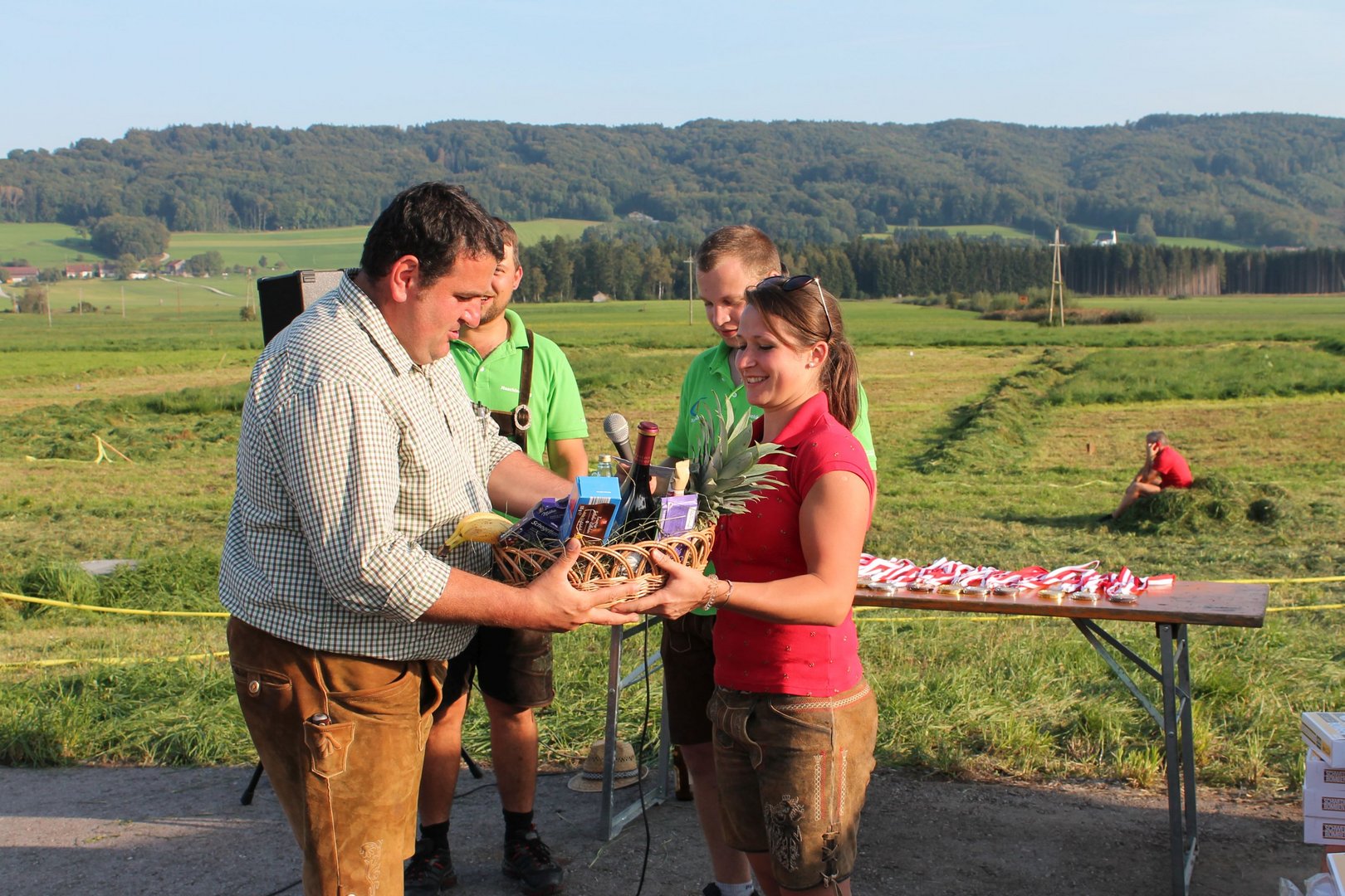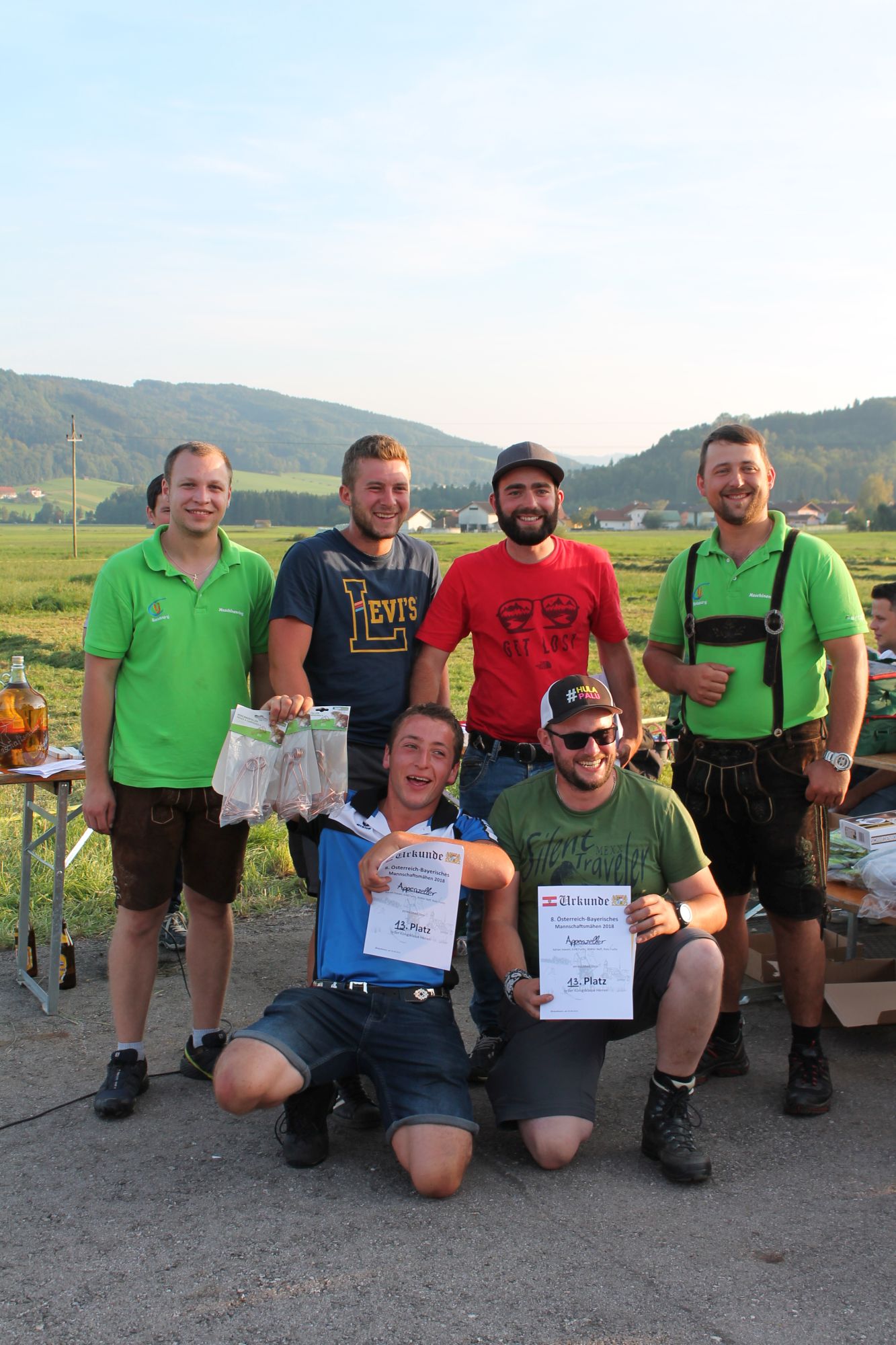Am Sonntag, den 16. September 2018 fand das Österreich-Bayerische Mannschaftsmähen in Michaelbeuern statt. Über 160 TeilnehmerInnen aus der Schweiz, Slowenien, dem Baskenland, Südtirol und Österreich kämpften um den Meisterschaftstitel. Anders als bei den Landes- oder Bundesentscheiden der Landjugend wird beim Österreich-Bayerischen Mannschaftsmähen nicht einzeln sondern in 4er-Teams gestartet. In vier verschiedenen Kategorien kann teilgenommen werden. Die Königsklasse Herren (Sensenblattlänge über 90 cm) mäht dabei eine Fläche von 10 x 20 m und die Damen 8 x 15 m. In dieser Kategorie kommen Sensen bis zu 135 cm zum Einsatz. In der Allgemeinen Klasse (Sensenblattlänge unter 90 cm) sind Flächen von 8 x 15 m für die Herren und 6 x 10 m für die Damen zu mähen. „Auf ein gegebenes Signal beginnt der 1. Mäher der jeweiligen Mannschaft mit dem Mähen. Sobald dieser die entsprechende Markierung, die halbe Strecke der Parzellenlänge, mit der Sense erreicht hat, gibt ein zugeteilter Zeitnehmer ein deutliches Handzeichen zum Start für den zweiten Mäher der Mannschaft. Dies wiederholt sich auch bei dem dritten und vierten Mäher. Nachdem der letzte Mäher das Mähen beendet hat, wird das Ende durch ein Handzeichen angezeigt“, erklärt Teilnehmer und Organisator Matthias Huber (Landjugend Michaelbeuern) den Ablauf des Mannschaftsmähens. „Eine weitere Besonderheit des Wettbewerbes ist die Bewertung der Mahd. Diese muss gerade und gleichmäßig verlaufen. Ist die Mahd bewertet, wird das Mähgut entfernt und die Schiedsrichterkommission, bestehend aus vier Schiedsrichtern, bewertet dann die Sauberkeit“, erklärt Chef-Juror Andre Pertiller (Eugendorf) weiter.