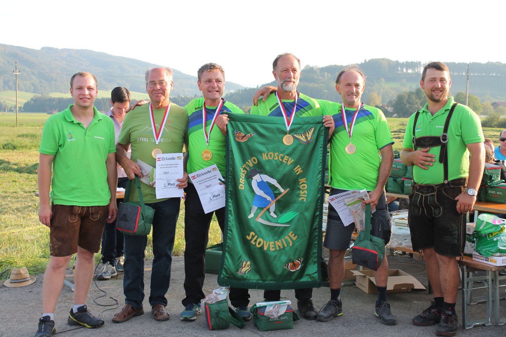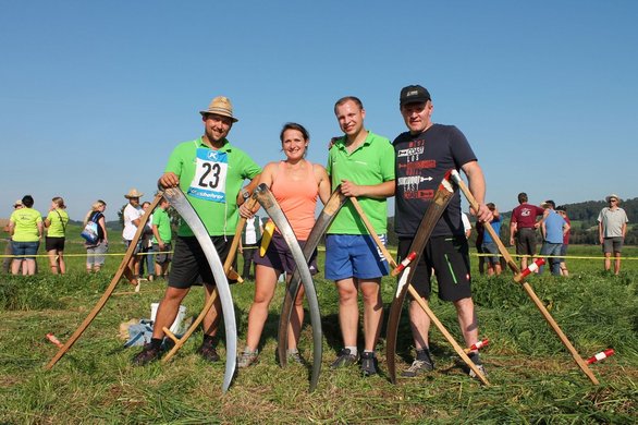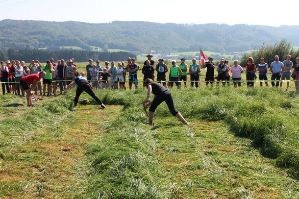 Es gab tolle sportliche Leistungen ebenso wie eine hervorragende Stimmung, die beim Anfeuern der Sportlerinnen und Sportler zu spüren war. In der Kategorie „Allgemeine Klasse Damen“ siegte die Mannschaft „Kleine Almtaler Sensengirls“ aus dem Almtal in Oberösterreich und in der Königsklasse Damen holte sich den ersten Stockerlplatz ebenfalls die Mannschaft aus dem Almtal, die „Große Almtaler Sensengirls“ mit einer Zeit von 2m 37 sec. Bei den Herrenklassen traten die besten vier Teams in einem Finale nochmal gegeneinander an. Nicht zu schlagen war das Team aus Slowenien „Senior“ mit einer Zeit von 2 min 81 sec in der Allgemeinen Klasse Herren. Die Teams aus Schweiz, Slowenien, Oberösterreich und Salzburg lieferten sich im Finale ein Kopf an Kopf Rennen um den Sieg in der Königsklasse Herren. Letztendlich konnte sich die Salzburger Mannschaft „Flachgauer Intensivbauern“ mit einer Finalzeit von sagenhaften 2 min 56 sec den Meisterschaftstitel holen. Dicht gefolgt von dem Team aus Oberösterreich und dem Team aus der Schweiz. Die teilnehmenden Kinder zeigten, dass es auch in Zukunft top MäherInnen geben wird. Mit einer tollen Technik und sauber abgemähten Flächen bewiesen sie ihr Können. „Der Wettbewerb ist ein faszinierendes Spektakel. Ständig spannende Wettkämpfe und viel Gelegenheit auch die verschiedenen Techniken und Wettkampfgeräte der anderen Länder kennen zu lernen. In den letzten Jahrzehnten hat sich das Sensenmähen zum Sport entwickelt und es bedarf viel Training, Kondition, Technik, Material und perfekte Abstimmung um ganz vorne Mitzumischen“, so ein Kommentar der amtierenden Europameisterin und Teilnehmerin Elisabeth Schilcher (Köstendorf). Das Österreich-Bayerische Mannschaftsmähen findet alle zwei Jahre statt, 2020 in Bayern.