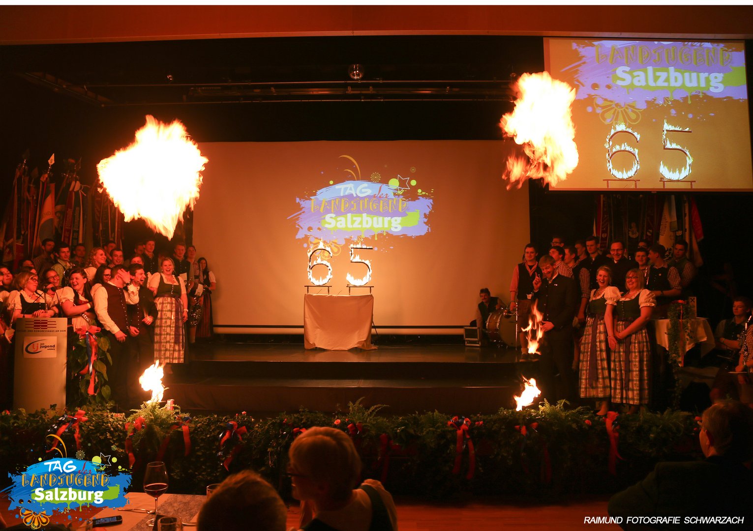 Der Tag der Landjugend Salzburg war ein voller Erfolg. 53 Vereinsfahnen der 60 Ortsgruppen im Bundesland sorgten für Gänsehaut beim Einzug der Vereinsfahnen. Knapp 60 MusikantInnen der Landjugend Musikkapelle, bestehend aus Mitgliedern aller Bezirke, gaben den Salzburger Landjugendmarsch zum Besten. Die Landeshymne, ebenfalls gespielt von der Musikkapelle, und die Entzündung des 65ers anlässlich des Bestehens, bildeten den Abschluss des Festaktes. Beim anschließenden Landesball wurde auf die Sieger und Geehrten des Abends angestoßen. Der Tag der Landjugend Salzburg bildet gleichzeitig den Kickoff für das neue Jahr, das wieder zahlreiche Projekte, ein umfangreiches Bildungsprogramm und jede Menge interessante Aktivitäten bietet.