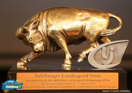 Ein unvergleichbar eindrucksvolles Jahr erlebte die Landjugend Piesendorf 2014. Gegen 60 Ortsgruppen des Landes setzte sie sich beim heurigen Tag der Landjugend in St. Johann durch und wurde als aktivste Ortsgruppe des vergangenen Jahres ausgezeichnet. Gestiftet und übergeben wurde der Preis von Landeshauptmann Dr. Wilfried Hauslauer. Ehrenamtliche Projektarbeit, soziales Engagement, Öffentlichkeitsarbeit und das Mitwirken an Landes- und Bundesveranstaltungen – das sind Kriterien für die aktivste Ortsgruppe. Mittels Videopräsentation wurden die fünf besten Ortsgruppen bekannt gegeben. Uttendorf, Maishofen, Piesendorf, Seekirchen und die Landjugend Mariapfarr-Weißpriach – sie alle glänzten durch ein ungemein vielfältiges Programm mit tollen Aktivitäten. Die Teilnahme am Bundesentscheid 4er-Cup und Reden mit dem hervorragenden vierten Platz von Margit Steiner, der Abschluss des Zertifikatslehrganges JUMP durch die Gruppenleitung Bernhard Auernigg und Martina Innerhofer, mehrere Spendenaktionen, sowie hervorragende Öffentlichkeitsarbeit gaben den Ausschlag zu Gunsten der jungen Piesendorfer Ortsgruppe. Unter großem Jubel nahm Gruppenleiterin Martina Innerhofer den Salzburger Landjugendstier von Landeshauptmann Dr. Wilfried Haslauer entgegen: „Höchste Anerkennung und Dank gilt der Landjugend Piesendorf für den Einsatz und das Engagement in und über die Gemeinde hinaus. Der Salzburger Landjugendstier symbolisiert die Kraft und die Dynamik, die in unserer Jugend steckt. Die Landjugend Piesendorf hat das im vergangenen Jahr des Öfteren bewiesen und kann stolz auf das Erreichte sein, “ so Landeshauptmann Haslauer bei der Verleihung.