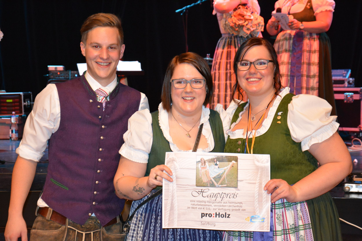 Tombola Viele großartige Tombolapreise warteten auf die Besucher: Als Hauptpreis konnte eine Hängematte von Pro Holz im Wert von € 510,00 gewonnen werden. Glücklich schätzen konnte sich dabei Tanja Weiß von der Landjugend Pfarrwerfen, welche an diesem Abend das richtige Los gezogen hat und sich somit über den Hauptpreis freuen konnte.
