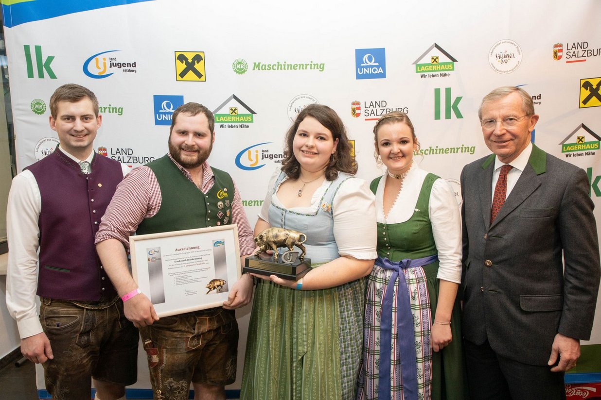 Landjugend Neumarkt ist aktivste Ortsgruppe Salzburgs Ein unvergleichbar eindrucksvolles Jahr erlebte die Landjugend Neumarkt im Jahr 2019. Gegen 60 Ortsgruppen des Landes setzte sie sich beim heurigen Tag der Landjugend in St. Johann durch und wurde als aktivste Ortsgruppe des vergangenen Jahres ausgezeichnet. Gestiftet und überreicht von Landeshauptmann Wilfried Haslauer nahm die Gruppenleiterin Katharina Mangelberger den Salzburger Landjugend Stier entgegen: „Wir hatten ein wirklich tolles Jahr. Alle Mitglieder haben an einem Strang gezogen und bei jedem Vorhaben mitgewirkt. Es ist Wahnsinn, dass wir heuer mit dem Stier ausgezeichnet werden“, ist die 21-jährige Neumarkterin überwältigt. Als zweit- und drittaktivste Ortsgruppe des Jahres wurden die Landjugend Niedernsill und die Landjugend Piesendorf gekürt. Soziales Engagement, Erfolge auf Landes- und Bundesebene sowie ehrenamtliche Projektarbeit sind Kriterien für die Auszeichnung zur aktivsten Ortsgruppe. Zahlreiche Seminarteilnahmen und Funktionärsweiterbildungen sowie eine gute Öffentlichkeitsarbeit fließen in die Bewertung ein. Ebenso Bronze für das Projekt „Gesunder Bauernhof im Kindergarten Sighartstein“ und Silber für das Projekt „As Materl zum Jagerbam - aus Alt mach Neu!“ gaben den Ausschlag zu Gunsten der Landjugend Neumarkt. „Die Landjugend ist einer der zentralen Impulsgeber im ländlichen Raum. Der Salzburger Landjugend Stier verkörpert wie viel Herz, Kraft und Ausdauer die Jugend in die Gemeinschaft investiert. Die Landjugend Neumarkt hat das auf eindrucksvolle Weise gezeigt und kann stolz darauf sein. Ich gratuliere der Landjugend Neumarkt und bedanke mich für ihren Einsatz in und über die Gemeinde hinaus", so Landeshauptmann Wilfried Haslauer bei der Verleihung.