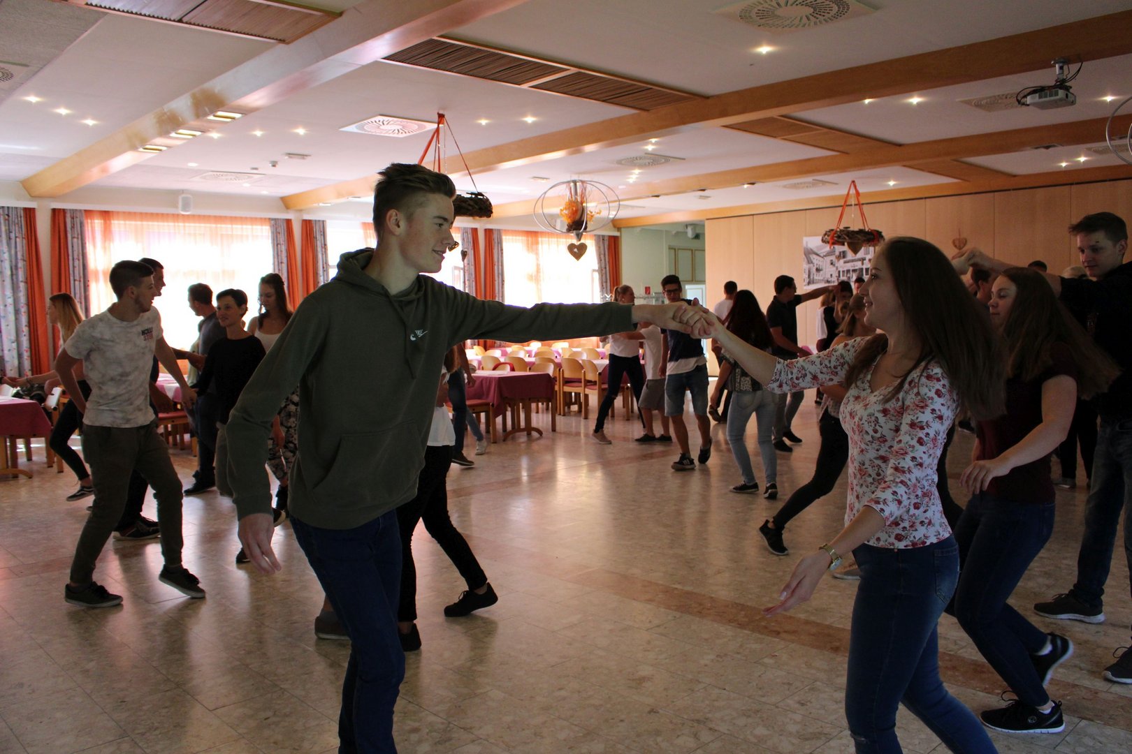 Schwerpunkt lag auf dem Discofox, der intensiv zu verschiedenster Musik geübt wurde. Die richtige Begleitmusik für den Discofox zu finden, ist nicht schwer. Wichtig ist, dass die gewählten Titel im 4/4- oder 2/4-Takt notiert sind. Beim Tempo stehen schnellere oder langsamere Varianten zur Verfügung. Viele Stücke der aktuellen Popmusik eignen sich für Discofox-Figuren und Schritte. Nach den Basisschritten wurden die ersten Figuren einstudiert. „Das Damensolo ist die einfachste Drehung im Discofox und auch für Anfänger leicht zu lernen. Hier dreht sich die Dame unter dem erhobenen linken Arm des Mannes an seine Seite und anschließend wieder zurück“, weiß Eva-Maria Schlick, Bildungsreferentin der Landjugend Bezirk Lungau. Abschließend lernten die fleißigen Tänzer den Zweischrittwalzer. „Beim Walzer ist besonders auf eine aufrechte Haltung zu achten. Schultern zurück und Rücken gerade“, weist Tanzlehrerin Dietrich ihre SchülerInnen an. Am Ende waren sich alle einig: „Tanzen macht Spaß, ist sportlich und bringt die Leute zusammen“. Auf die Frage „Gema tonz`n?“ ist somit jede/r TeilnehmerIn vorbereitet und die einzige Antwort wird von nun an ein „Ja“ sein.