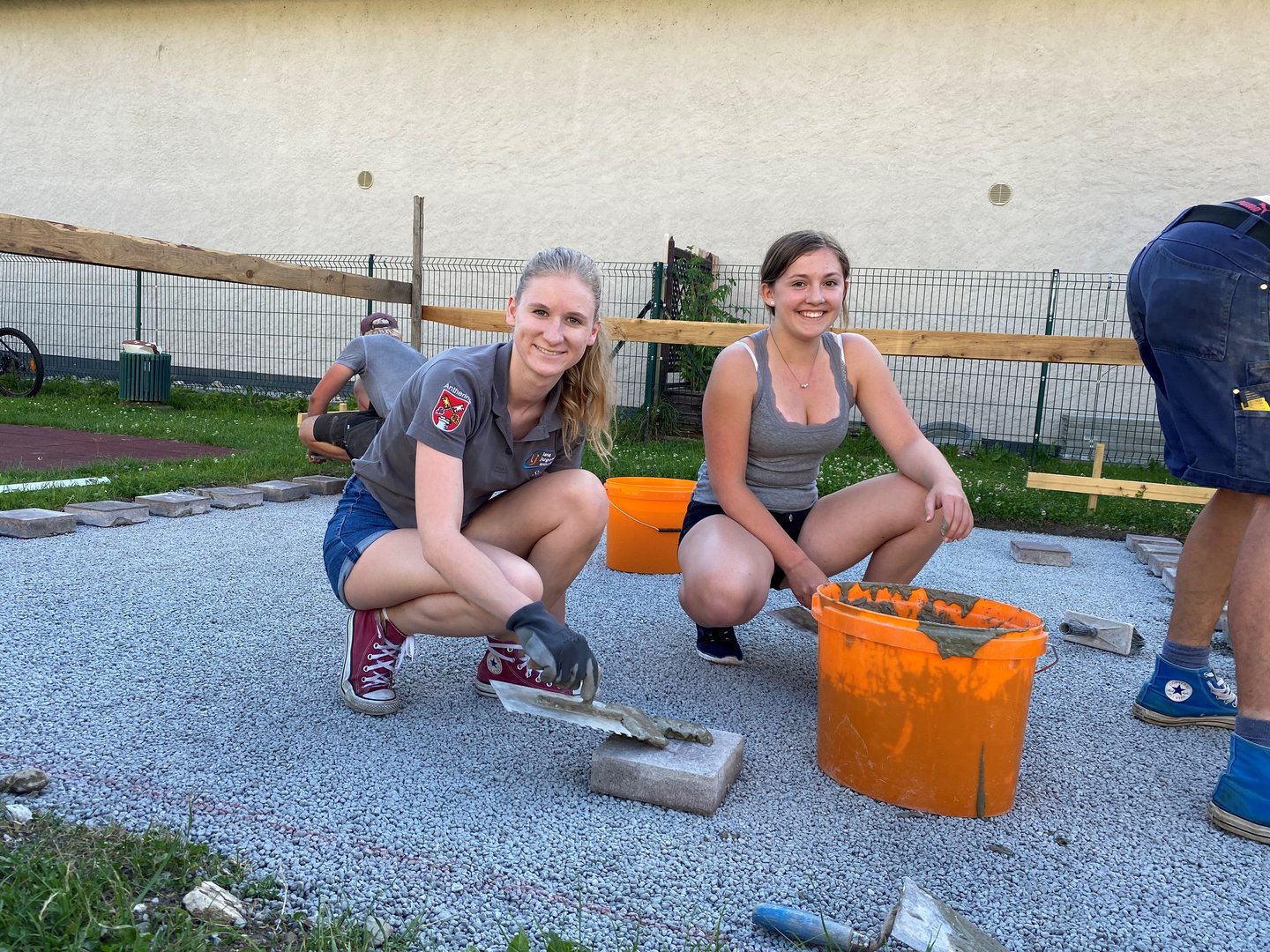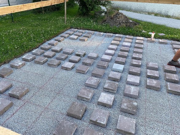 Am 5. Juni wurde der Grundstein für die Entstehung des Spielfeldes gesetzt. Dank dynamischer Unterstützung konnte das Feld vermessen und anschließend mithilfe eines Baggers ausgehoben werden. Wichtig dabei war ein genügend tiefer Frostkoffer, damit sich das Feld bei Kälte nicht hebt. Der Splittbeton wurde an einem weiteren Tag in das ausgeschaufelte Loch eingebracht. Nun hieß es abwarten, bis die erste Schicht getrocknet war. Im nächsten Schritt wurde das Feld präzise vermessen, um die Pflastersteine an die richtige Position zu kleben. Die Lücken wurden mit Kies und weißem Zement ausgefüllt, sodass eine ebene Schicht zwischen den Komponenten entstand. Als nächstes werden die Pflastersteine bemalt. Die Landjugend Anthering kann es kaum erwarten, das Ergebnis in voller Pracht zu sehen und freut sich bereits jetzt auf die Einweihung des Projektes.