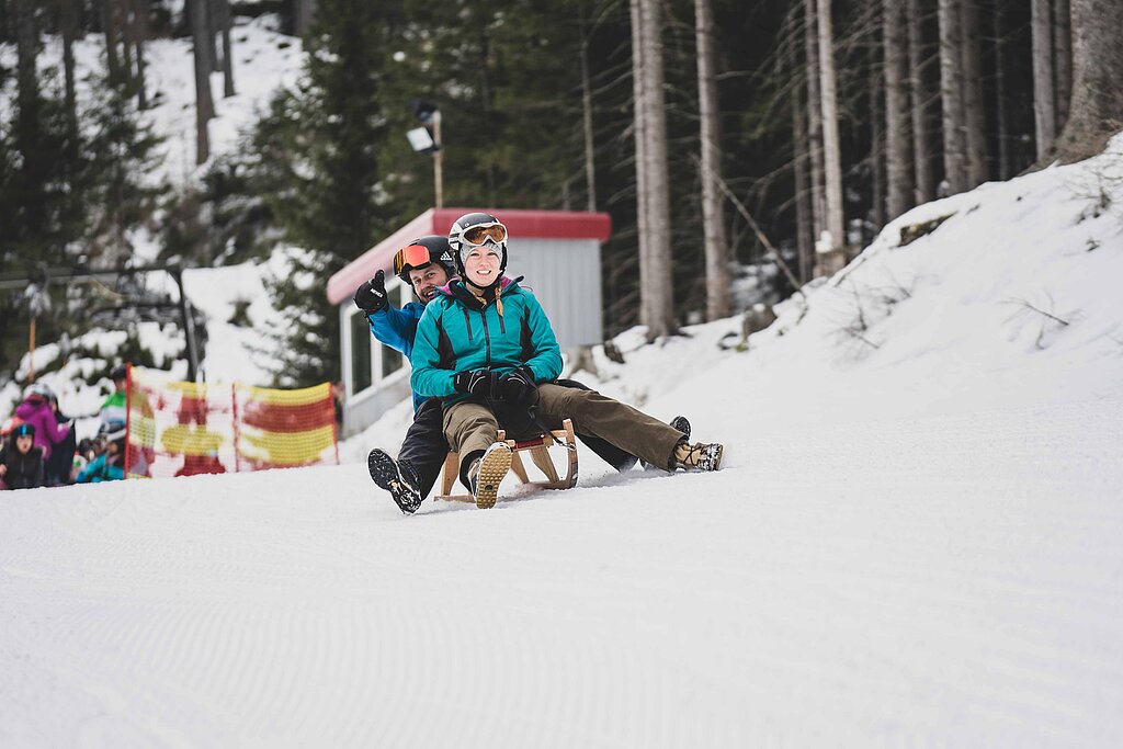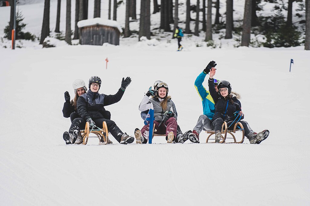 Nicht um die schnellste Zeit, sondern um den Mittelwert kämpften die Paare beim Rodelbewerb. Während der Rodelstrecke mussten von den TeilnehmerInnen Geschicklichkeitsbewerbe erfüllt werden, welche ebenso zur Wertung zählten. Mit nur vier Sekunden Abweichung zur Mittelzeit holte sich das Rodelpaar Monika Millinger und Christoph Kreuzberger (Landjugend St. Martin-Wießbach-Lofer und Bischofshofen) die Goldmedaille. Dicht gefolgt von Stefanie Hallinger und Johannes Walchhofer (Landjugend Enns-Pongau). Den dritten Rang holten sich Viktoria Ellmauer und Thomas Lottermoser (Landjugend Rauris).