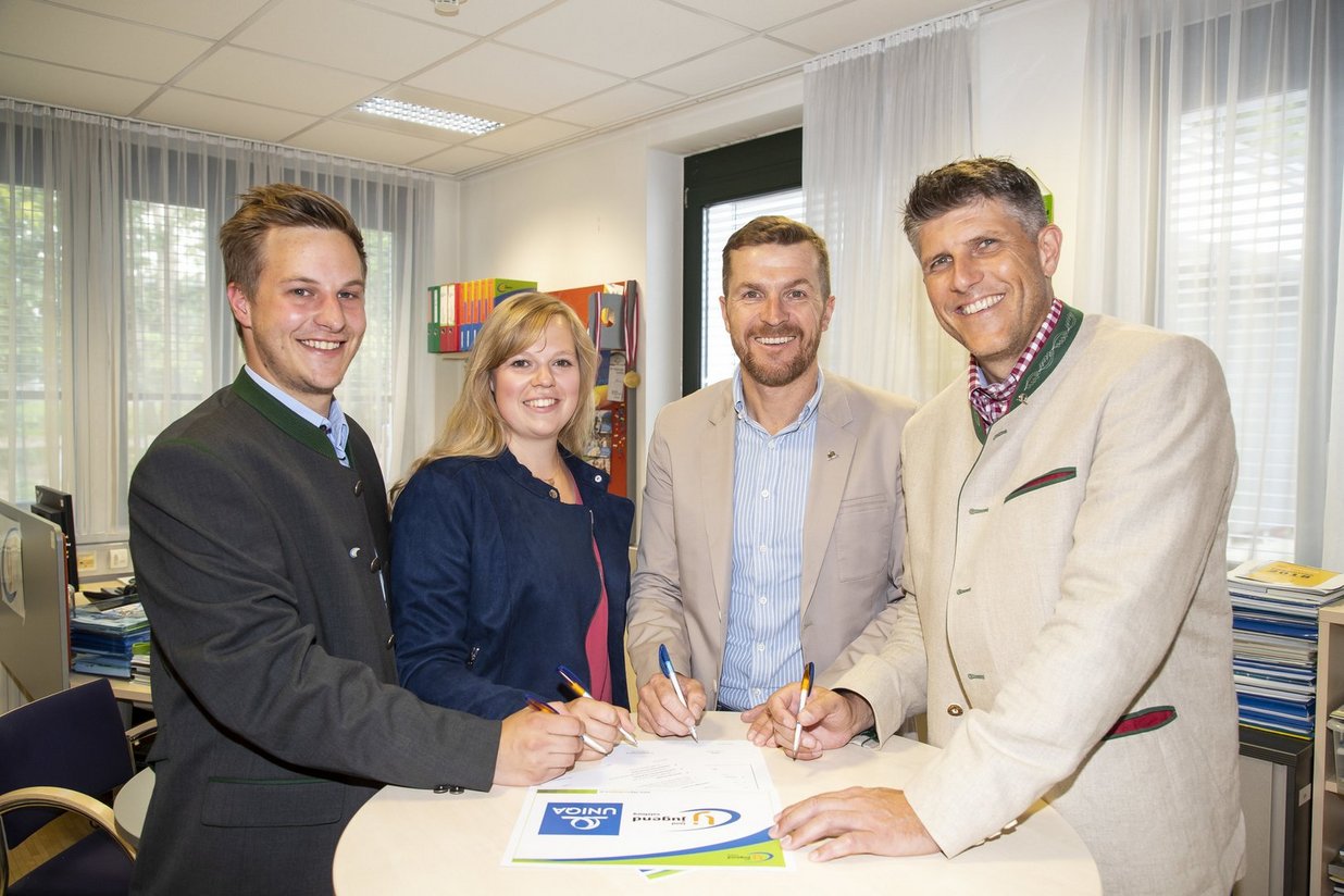 Die SALZBURGER UNIQA und die Salzburger Landjugend haben die bereits 2016 gestartete Partnerschaft neu besiegelt. Das Kooperationsabkommen, das eine finanzielle Unterstützung für die Landjugend Salzburg beinhaltet, wurde nun von den Regionalleitern Peter Vorderleitner und Josef Pöchtrager sowie Landesleiterin Karin Asen, Landesobmann Maximilian Brugger und Geschäftsführerin Elisabeth Weilbuchner unterfertigt. „Die SALZBURGER UNIQA unterstützt eine Vielzahl an Initiativen und Organisationen. Jung, dynamisch und in der Region verwurzelt – das sind Eigenschaften, die auf UNIQA und die Landjugend zutreffen. Mit der größten Jungendorganisation Salzburgs haben wir einen sehr aktiven und regional verankerten Partner“, so Regionalleiter Peter Vorderleitner. Die Führung der Landjugend Salzburg ist bereits mitten in der Umsetzung der geplanten Projekte und Aktivitäten: „Auch für das heurigen Jahr haben wir uns viel vorgenommen. Die Aktionen zu dem Jahresschwerpunktthema „Vielfalt Regionalität - Salzburg & seine Qualität“ sind mitten in der Umsetzungsphase und gehen auf den Abschluss zu. Deshalb ist für uns die finanzielle Unterstützung unseres Partners sehr wichtig“, so Geschäftsführerin Elisabeth Weilbuchner.