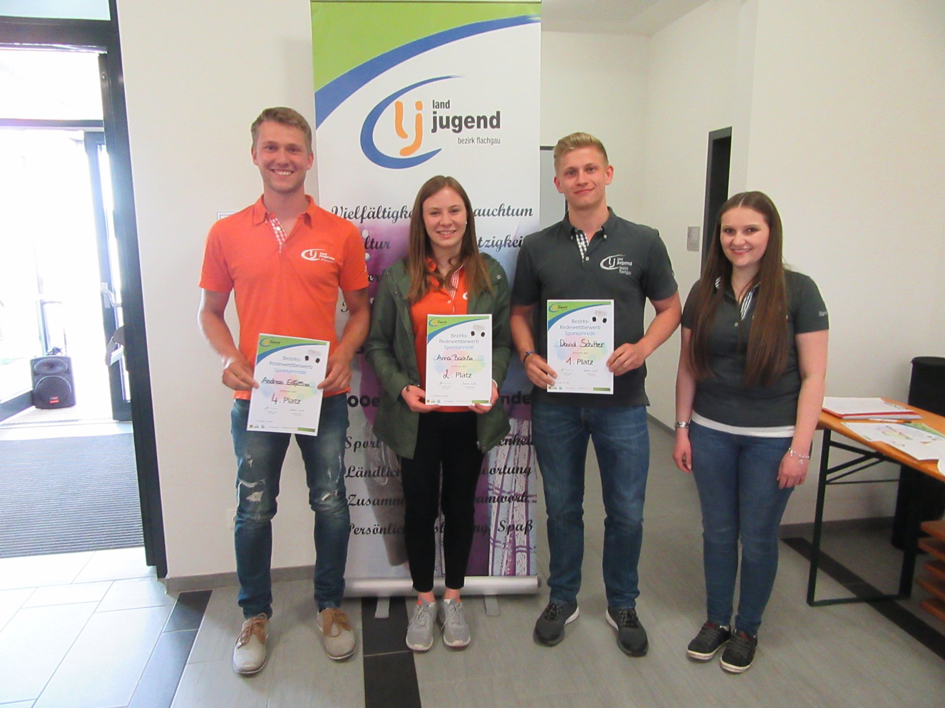 Allgemeinwissen, Geschicklichkeit und rhetorisches Können. Das war am Sonntag, dem 28. April in St. Georgen gefragt. Aus rund 70 Landjugendmitgliedern der Ortsgruppen im Flachgau wurden die besten Redner und 4er-Cup Teams gekürt. Dabei verfolgten alle ein Ziel: die Qualifikation für die diesjährigen Landesentscheide 4er-Cup und Reden der Landjugend Salzburg. 4er-Cup: Wissen, Geschick und Teamfähigkeit Vielseitige und herausfordernde Stationen verlangten den Teams einiges ab. Bei der Station aktuelles Zeitgeschehen erstreckte sich der Fragenkatalog von den britischen Royals, über die aktuellen Themen aus Österreich und der ganzen Welt bis hin zu Zukunftstrends. Auch das aktuelle Jahresschwerpunkthema „nachhaltig[ER]leben“ war Thema bei einer Station. Fitness und Geschick bewiesen die Teams bei den Action-Stationen. Dabei legten die Teilnehmer besonders viel Ehrgeiz an den Tag. Ziel dieser Station war es, einen Parcours in möglichst kurzer Zeit zu bewältigen. Oberstes Gebot dabei ist die Zusammenarbeit zwischen den Teamkollegen. Köstendorf holt sich die Goldmedaille Nicht zu toppen war das Team aus Köstendorf mit Sandra Moser, Karoline Entfellner, Michael Kübler und Andreas Nussbaumer. Mit viel Einsatz schnappten sie sich den Sieg vor der Landjugend Berndorf. Der dritte Rang ging an die Gruppe „eins“ der Landjugend Göming. Die drei Teams vertreten die Landjugend Bezirk Flachgau beim diesjährigen Landesentscheid am 2. Juni in Unternberg, Lungau. Redewettbewerb – Spontanität und rhetorische Gewandtheit Beim diesjährigen Bezirks-Redewettbewerb traten alle Teilnehmer in hervorragender Manier auf. Die zugelosten Redethemen wurden von erfahrenen Rednern, aber auch von frischen Teilnehmern komplett unterschiedlich argumentiert. Das machte die Bewertung der Jury nicht einfach. Mit einer überzeugenden Spontanrede über das Thema „Umweltverschmutzung – ein ständig präsentes Thema: Wo kann sich jeder selbst an der Nase nehmen und etwas dagegen tun?“, feierte David Schitter (Landjugend Straßwalchen) seinen Bezirkssieg. Den zweiten Stockerlplatz konnte sich Anna Bachler (Landjugend Köstendorf) mit einer Rede über das freiwillige Ehrenamt sichern. Katharina Mangelberger (Landjugend Neumarkt) erfreute sich über den 3. Rang. „Die Landjugend Bezirk Flachgau blickt auf einen sehr interessanten, tollen und unterhaltsamen Bewerbstag zurück. Dabei bewies dieser Bezirksentscheid wieder einmal wie geschickt und redegewandt unsere Landjugendmitglieder sind“, erzählt Bezirksleiterin Martina Gerstl begeistert.
