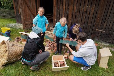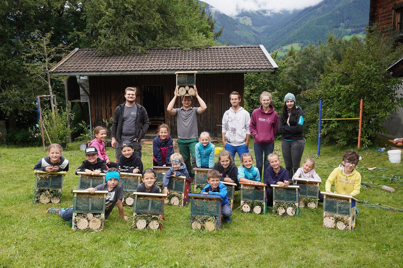 Gemeinsam wurden Materialien vorbereitet, Äste zersägt und Löcher gebohrt. Daraufhin durften die Kinder ihr Insektenhotel befüllen, wetterfest machen und kreativ bemalen. Nebenbei erfuhren sie interessante Fakten über die Wildbiene und andere Nützlinge, die das Insektenhotel bewohnen. „Unser Ziel war, dass die Kinder die Vielfalt unserer Natur auf spielerische Art und Weise erleben. Der Spaß durfte natürlich nicht zu kurz kommen,“ erklärt Projektleiter Martin Steiner. Dasselbe Ziel wurde auch am 17. Juli verfolgt, als die Landjugend Piesendorf gemeinsam mit Kindern über eine Tonne des indischen Springkrauts in ihrer Heimatgemeinde bekämpfte.