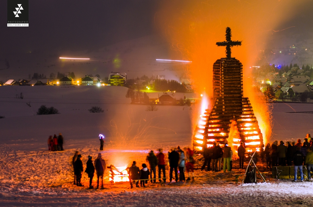 Schon seit der vorchristlichen Zeit entzündete man zu Ehren der Göttin Ostara Feuer und huldigte ihr mit einem eigenen Lichtfest. Das Osterfeuer entwickelte sich zu einem wichtigen Bestandteil des Christentums und der Brauch der Osterfeuer blieb bis heute erhalten. Vor allem der Lungau ist für seine Osterfeuer in Blockbauweise bekannt. In vielen Gemeinden des Lungaus übernehmen das Zimmern des Osterfeuers seit Jahrzehnten die Landjugendgruppen. Auch bei der Bevölkerung findet das Osterfeuer großen Anklang und so kommen in der Karwoche hunderte Leute, um die einmaligen Osterfeuer zu sehen. In der Nacht zum Ostersonntag werden die Osterfeuer traditionell mit dem geweihten Feuer entzündet. „Traditionelle Volkskultur bietet den Raum für Kreativität und neue Ideen, das wollten wir mit unserem Osterfeuer zeigen“, so die Gruppenleitung Anna Jessner und Lukas Lasshofer aus Lessach.