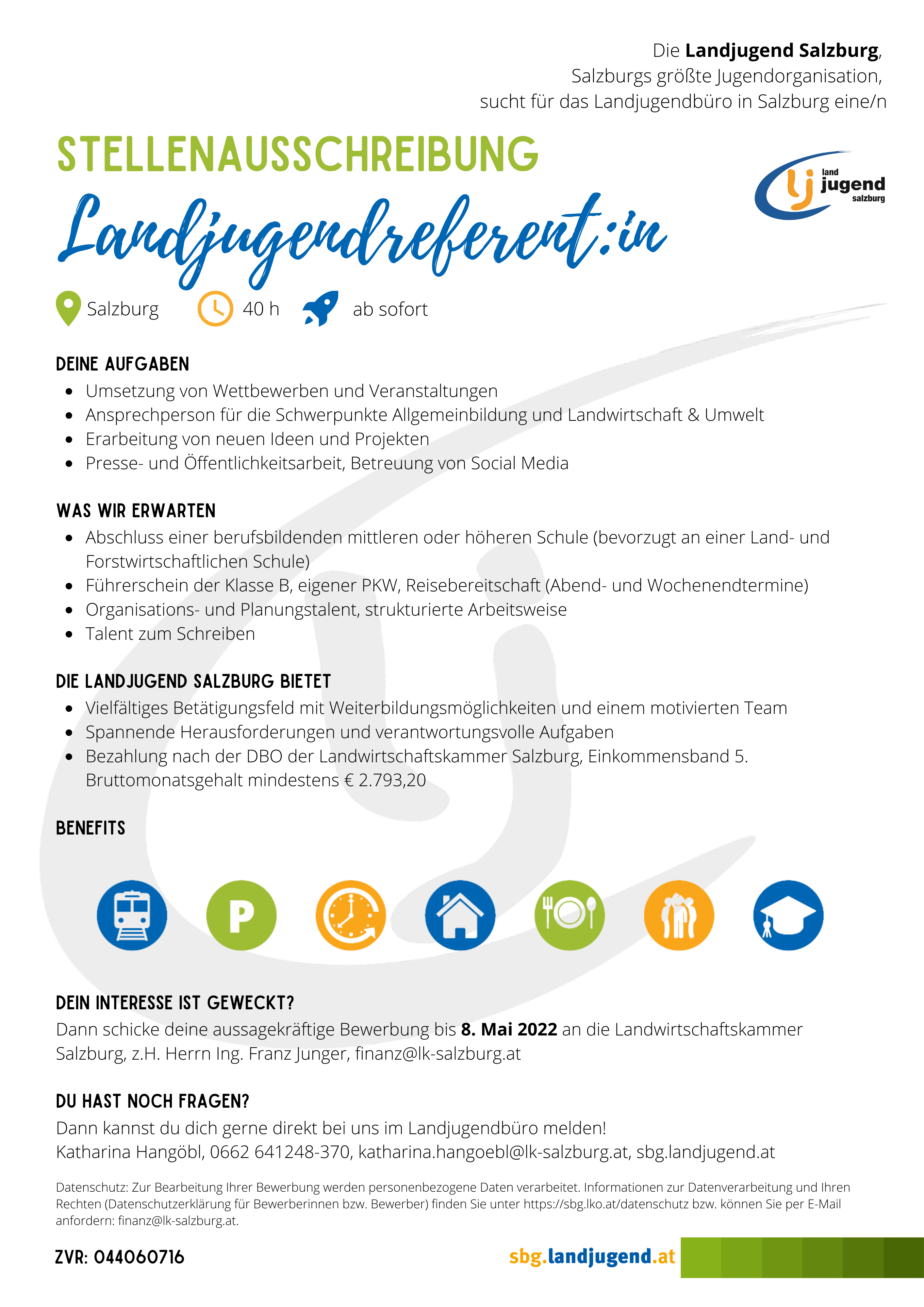 Ab SOFORT suchen wir eine Landjugendreferentin oder einen Landjugendreferenten, die/der mit uns die Zukunft der größten Jugendorganisation Salzburgs mitgestaltet.